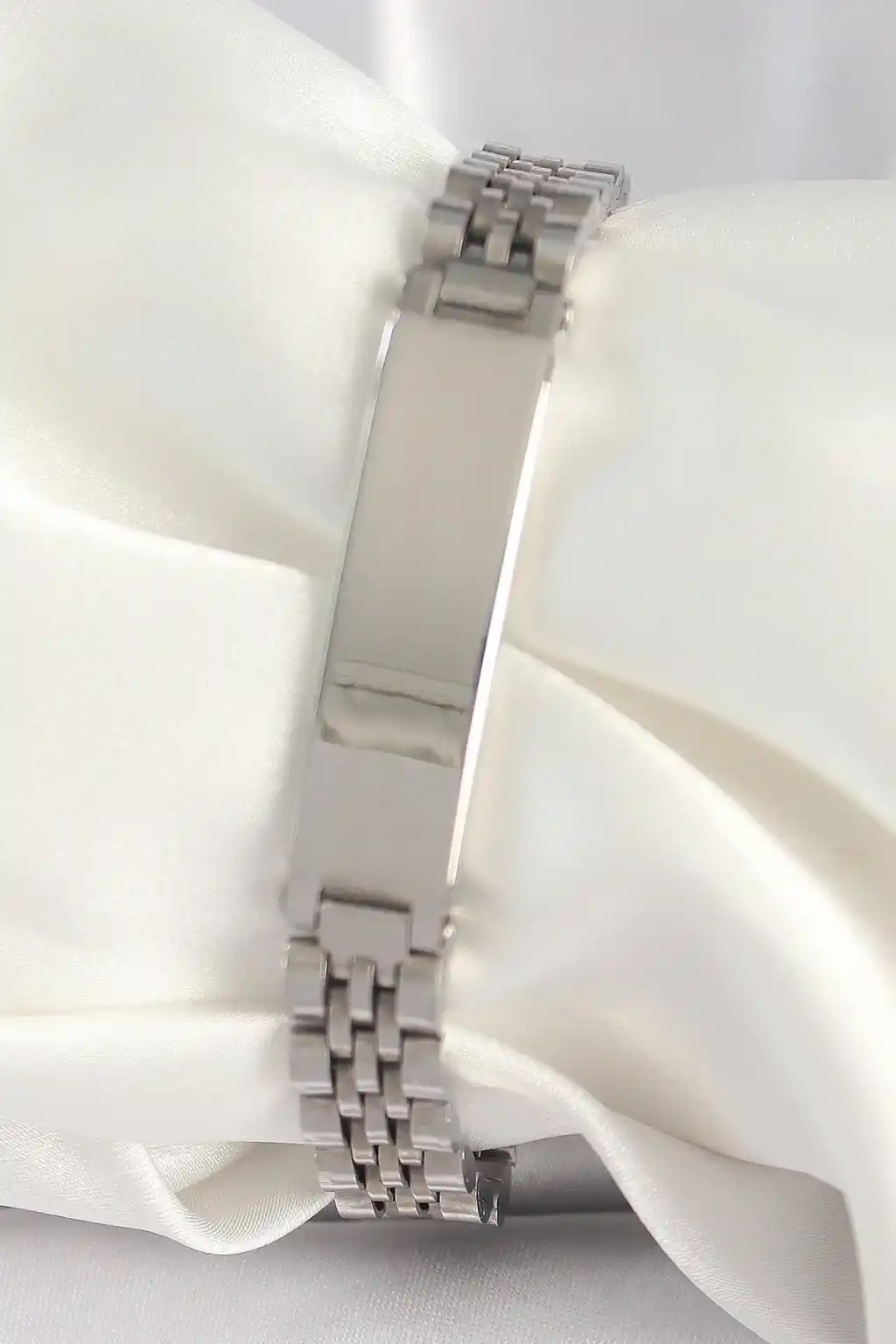 316L Çelik Gümüş Renk Zincir Künye Model Erkek Bileklik