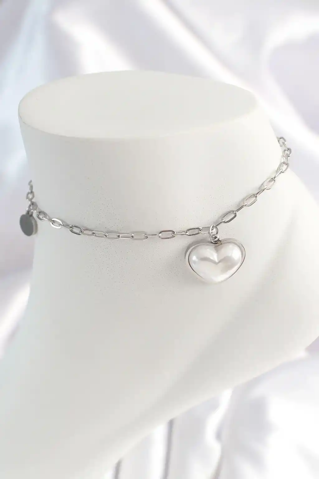 316L Çelik Gümüş Renk Zincir Model 3D Kalp Beyaz Kalp Figür Kadın HalHal