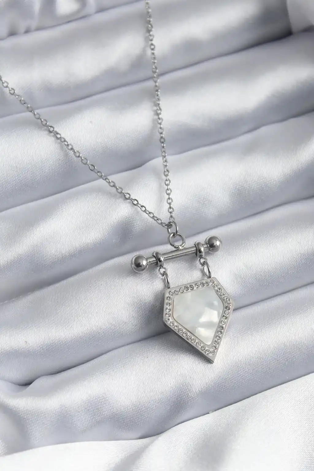 316L Çelik Gümüş Renk Zirkon Taş Detay Kadın Kolye