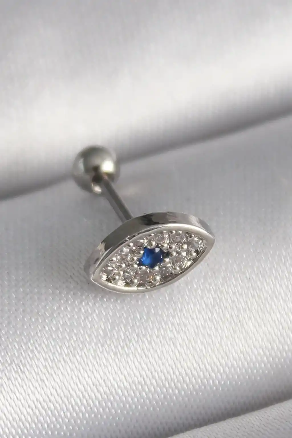 316L Çelik Gümüş Renk Zirkon Taşlı Göz Tragus Piercing