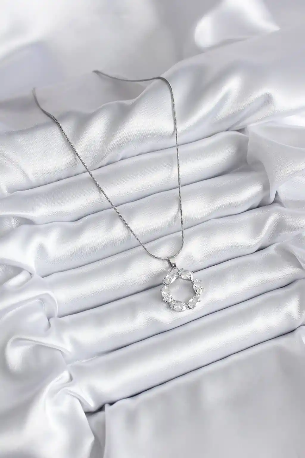 316L Çelik Gümüş Renk Zirkon Taşlı Kadın Kolye