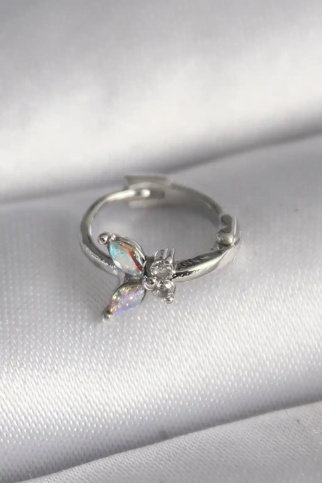 316L Çelik Gümüş Renk Zirkon Taşlı Kelebek Model Tragus Piercing