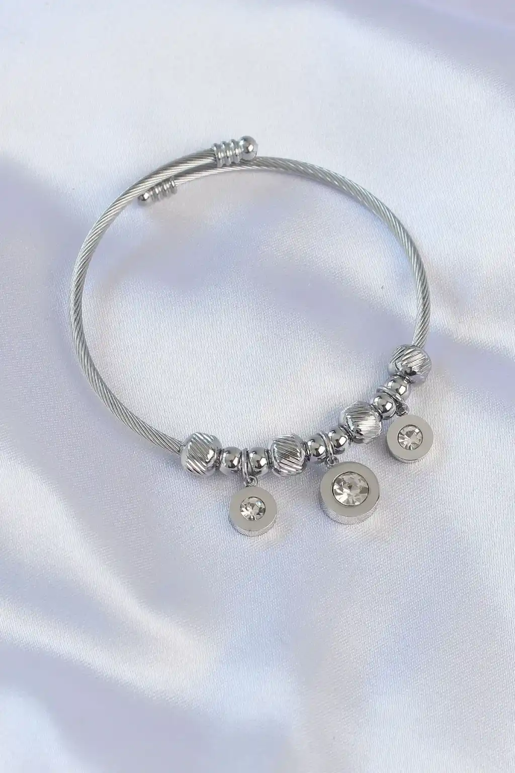 316L Çelik Gümüş Renk Zirkon Taşlı Model Charm Bileklik