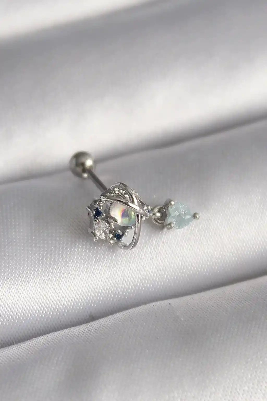 316L Çelik Gümüş Renk Zirkon Taşlı Sallantı Kalp Detay Tragus Piercing