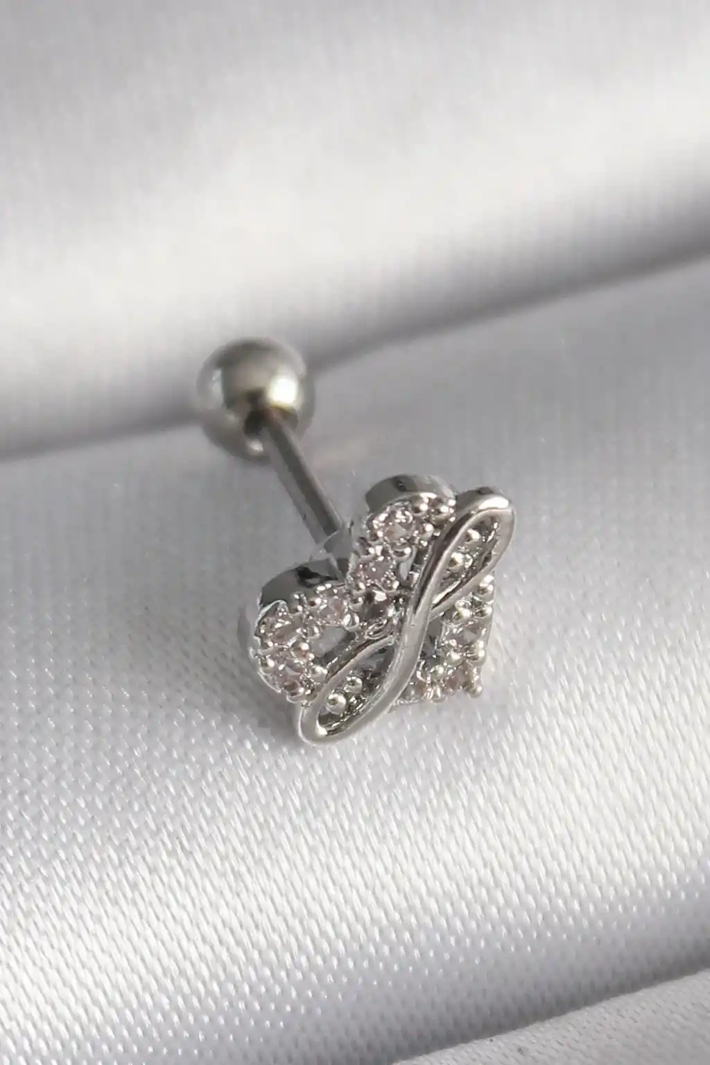 316L Çelik Gümüş Renk Zirkon Taşlı Sonsuzluk Detay Tragus Piercing
