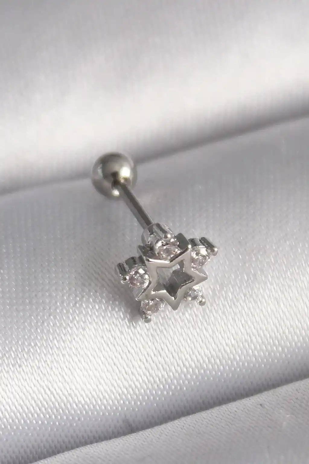 316L Çelik Gümüş Renk Zirkon Taşlı Yıldız Model Tragus Piercing