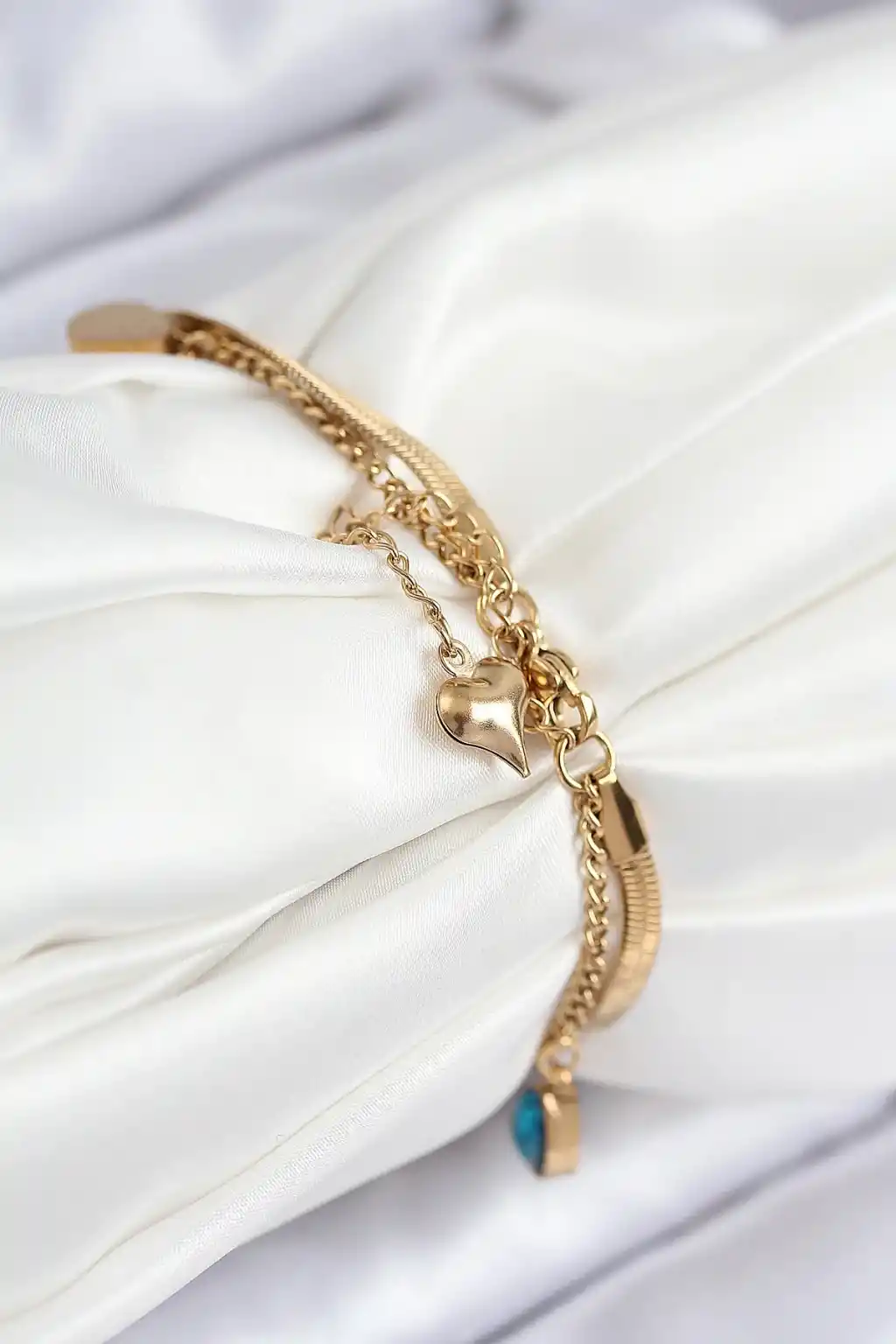 316L Çelik Nazar Boncuk Detaylı Mavi Zirkon Taşlı Model İtalyan Zincir Gold Renk Kadın Bileklik