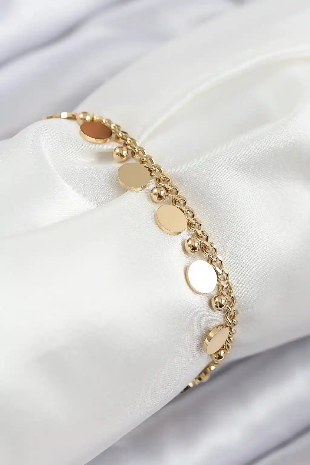 316L Çelik Sıralı Pul Model Gold Renk Kadın Bileklik