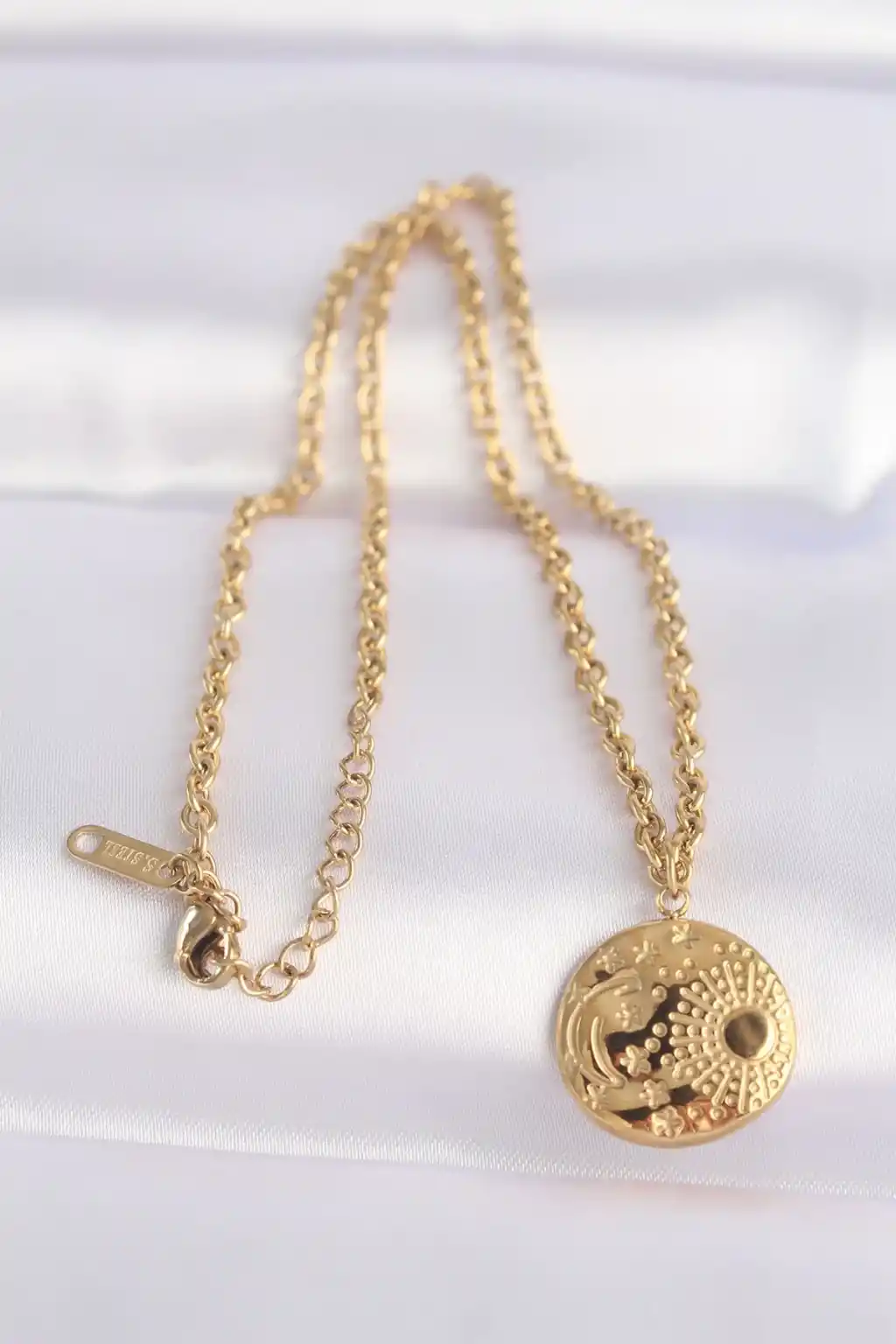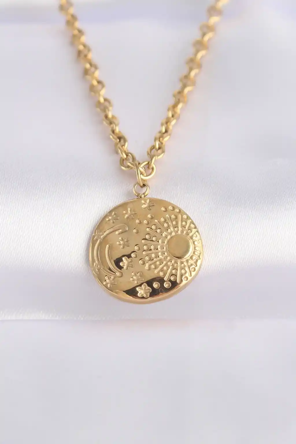 316L Çelik Zincir Altın Renk Oval Desenli Kolye