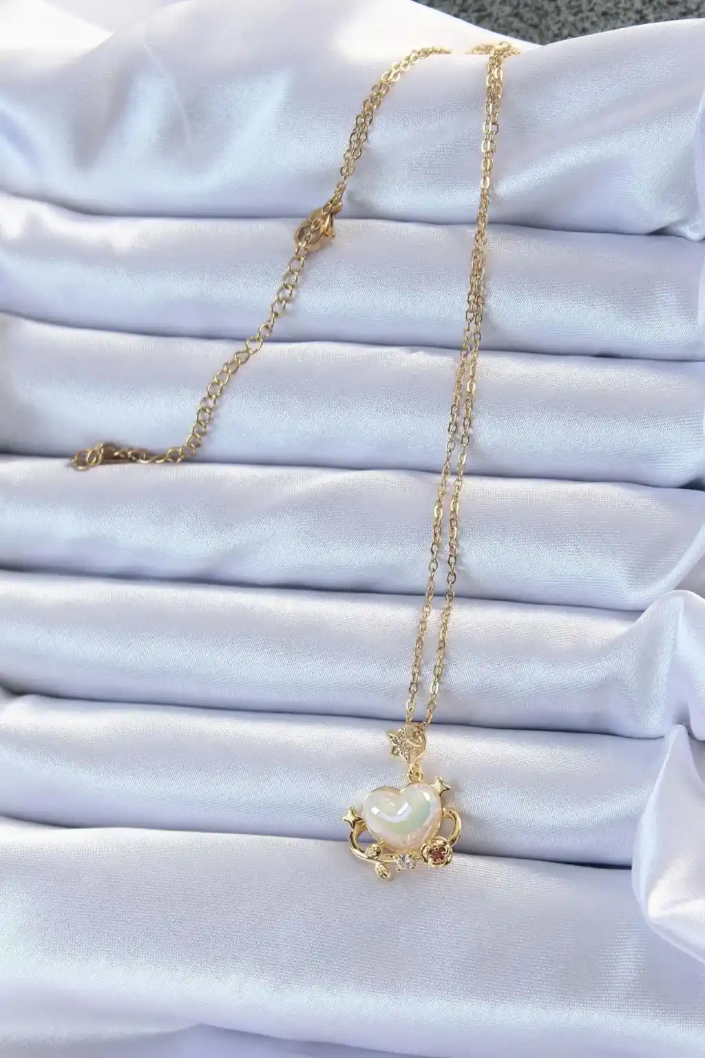 316L Çelik Zincir Altın Renk Zirkon Taşlı Gezegen Görünümlü Kalp Kolye