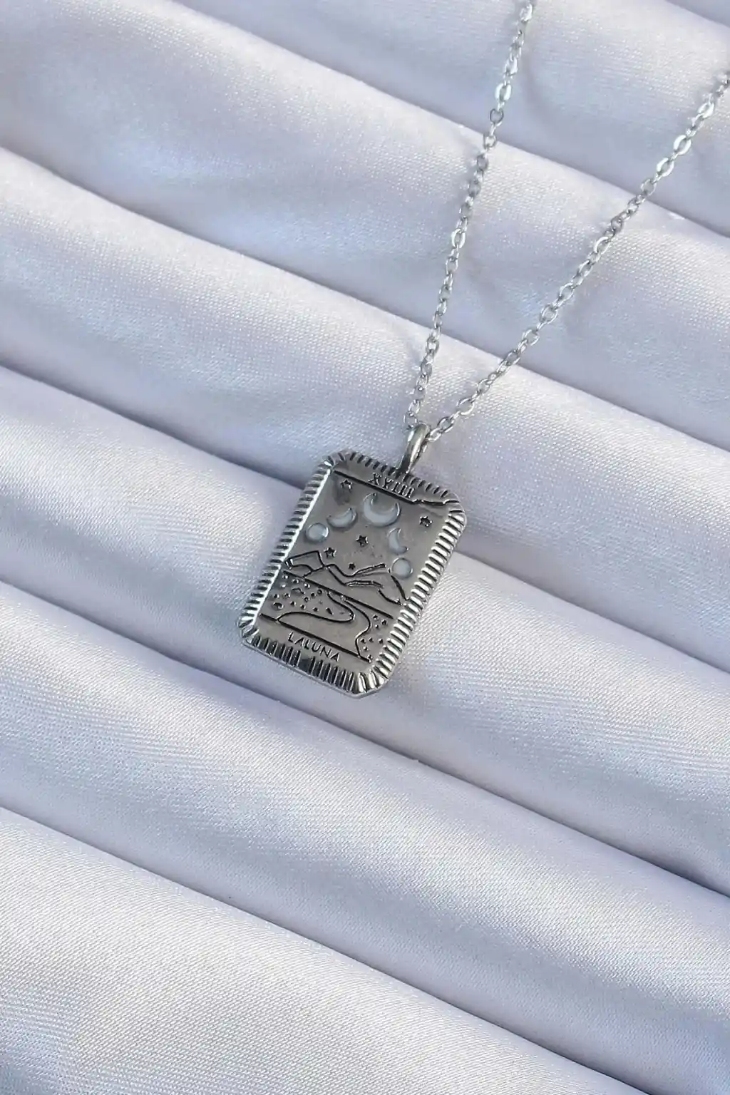 316L Çelik Zincir Eskitme Gümüş Renk Ay Figürlü Tarot Kolye