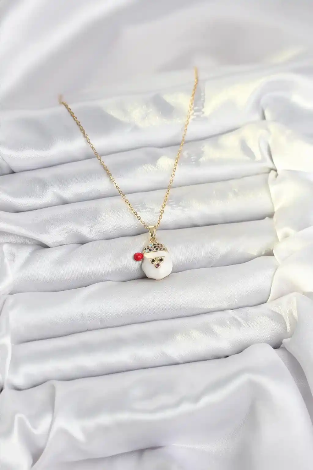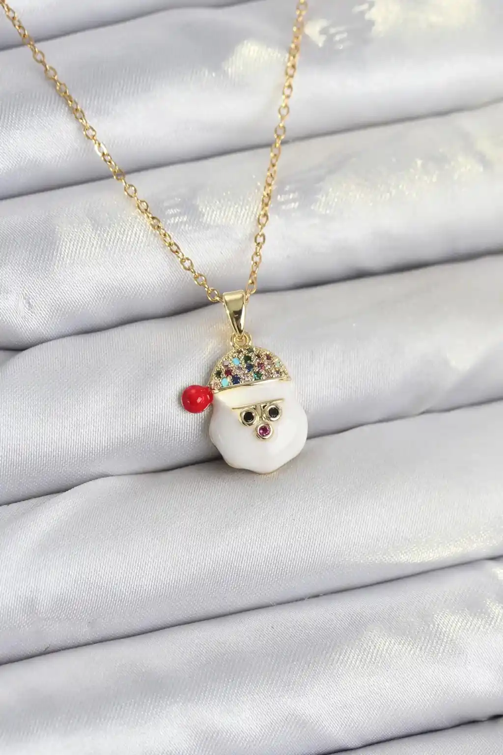 316L Çelik Zincir Gold Renk Şapkalı Kardan Adam Kafası Model Yılbaşı Temalı Kadın Kolye