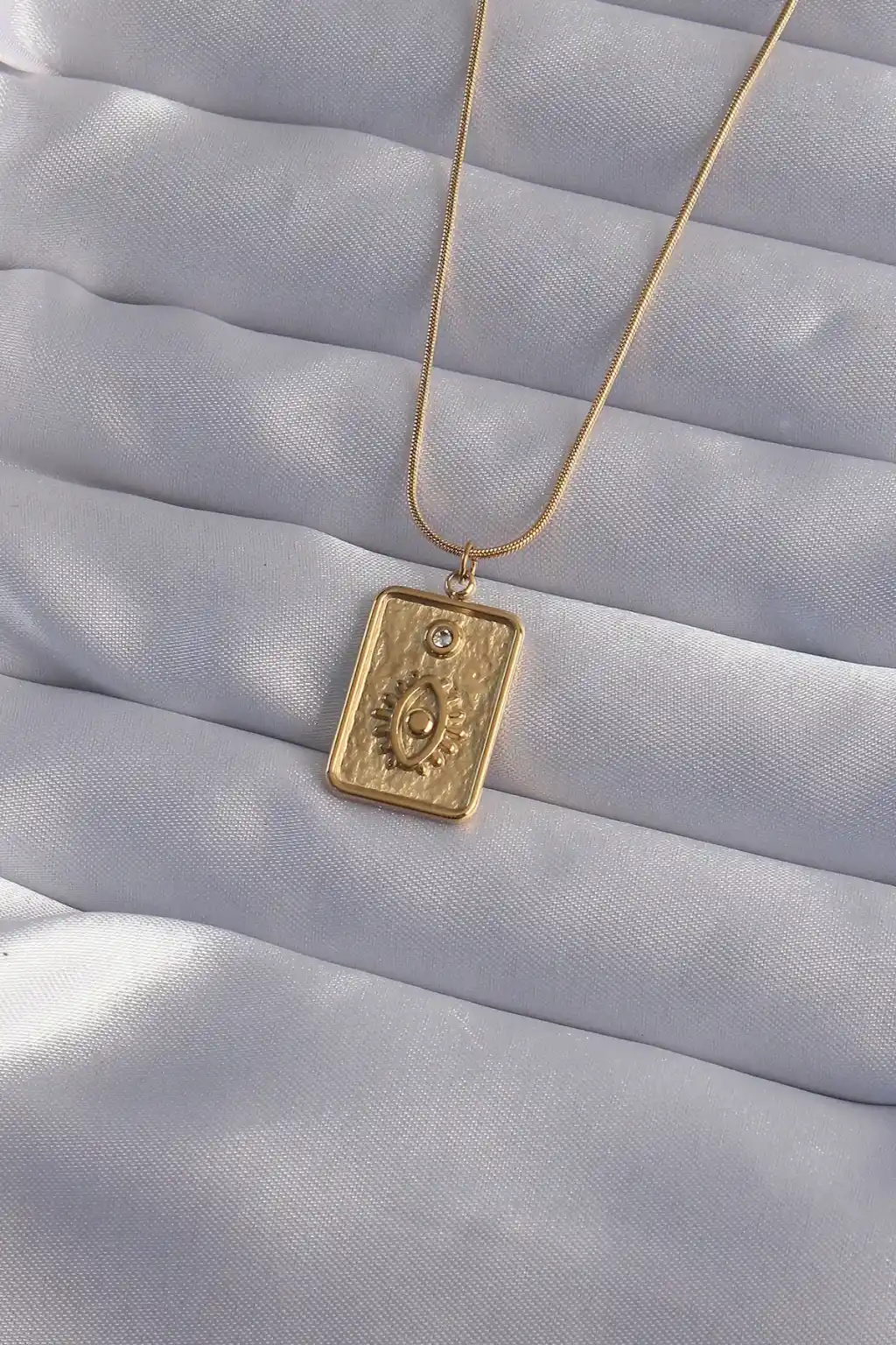 316L Çelik Zincir Gold Renk Zirkon Taşlı Göz Figür Tarot Kolye