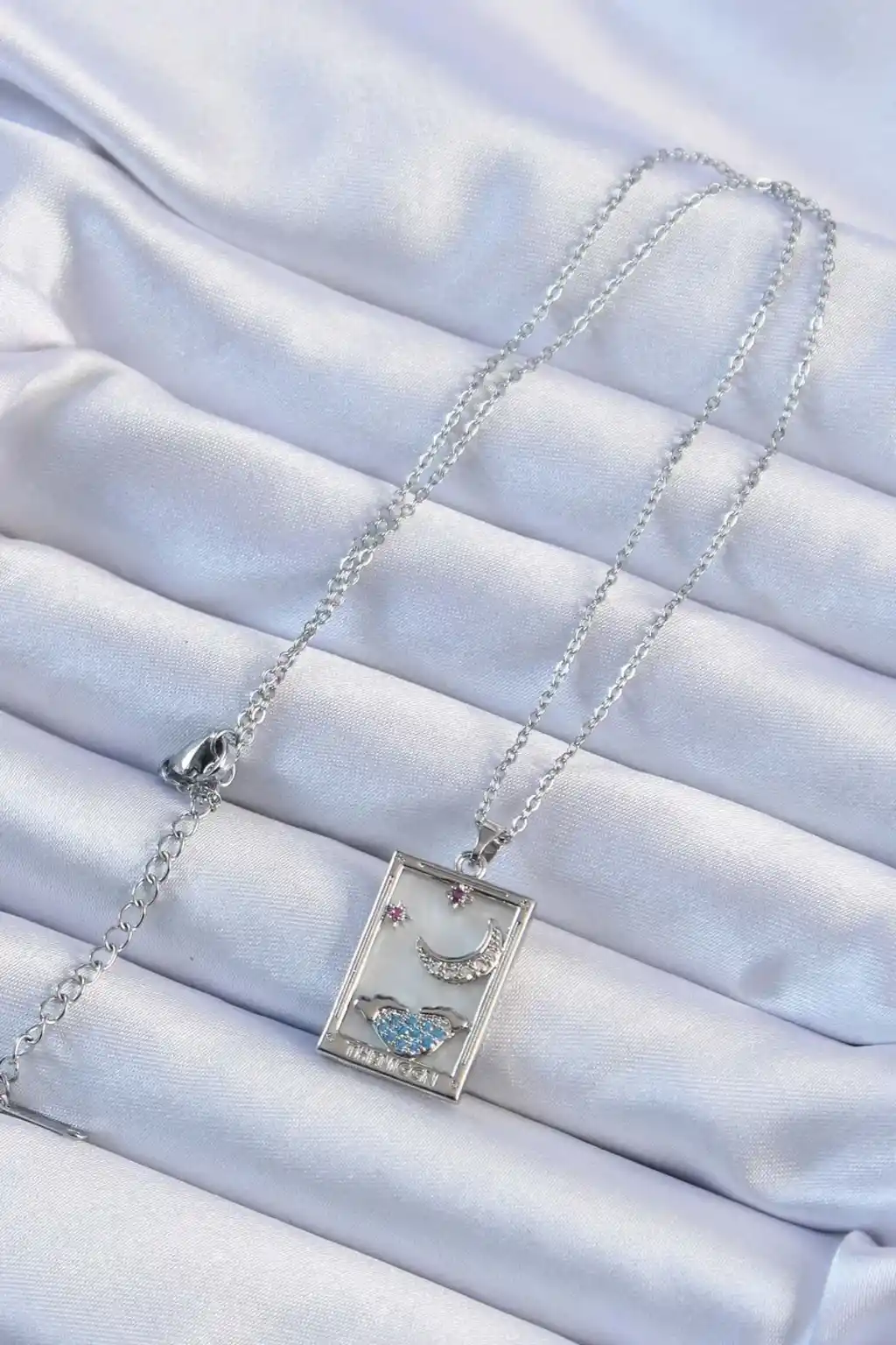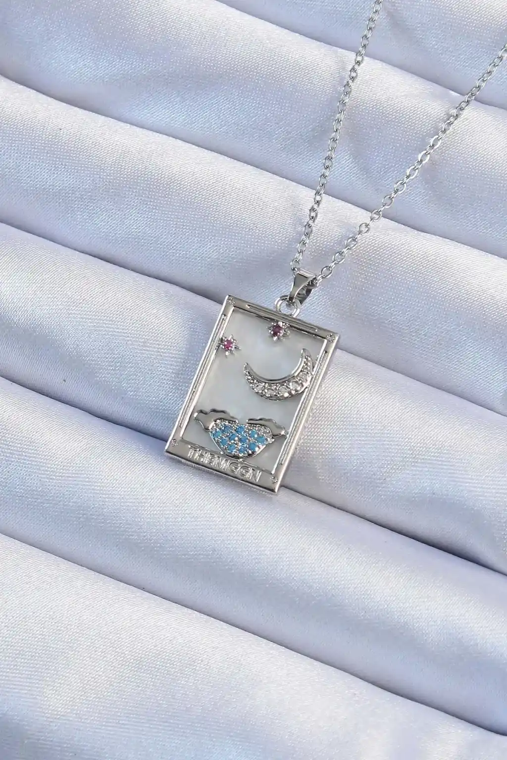 316L Çelik Zincir Gümüş Renk Zirkon Taşlı Ay Figürlü Tarot Kolye
