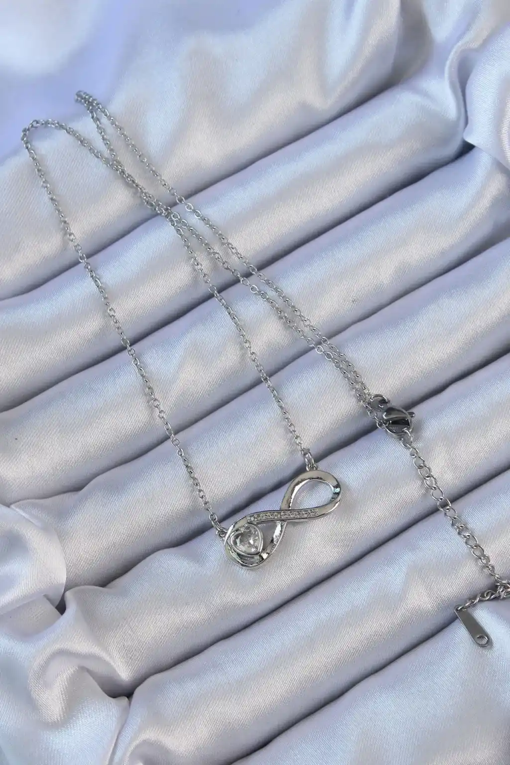 316L Çelik Zincir Gümüş Renk Zirkon Taşlı Minimal Kalp Figür Sonsuzluk Kolye