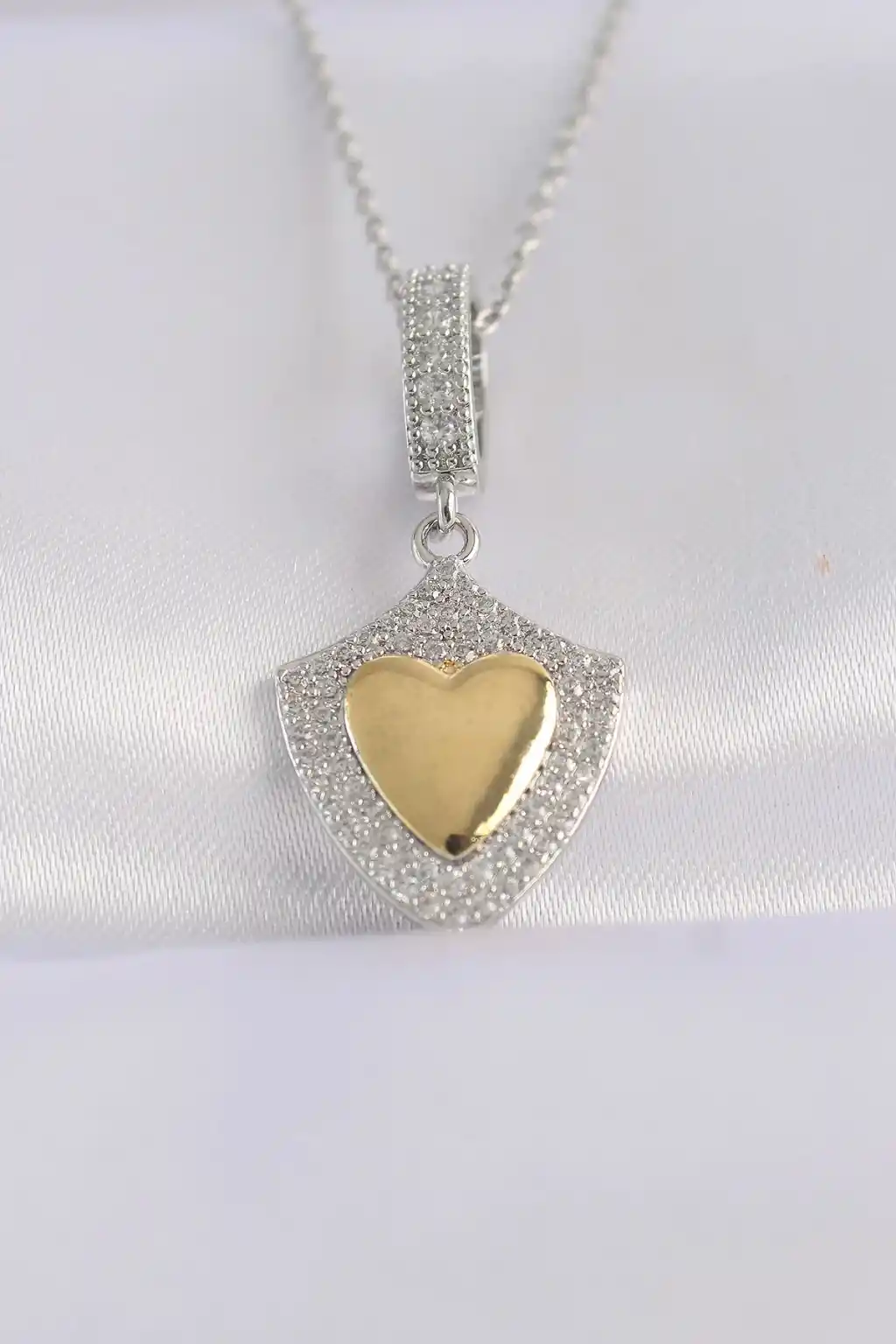 316L Çelik Zincir Gümüş Renk Zirkon Taşlı Tasarım Altın Renk Kalp Kolye