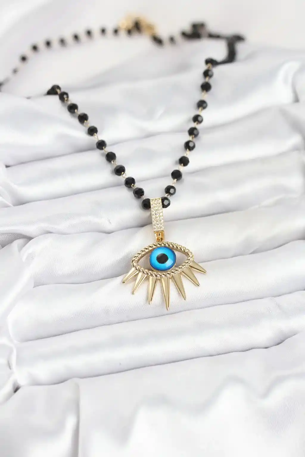 316L Çelik Zincir Kristal Boncuklu Göz Model Kadın Kolye