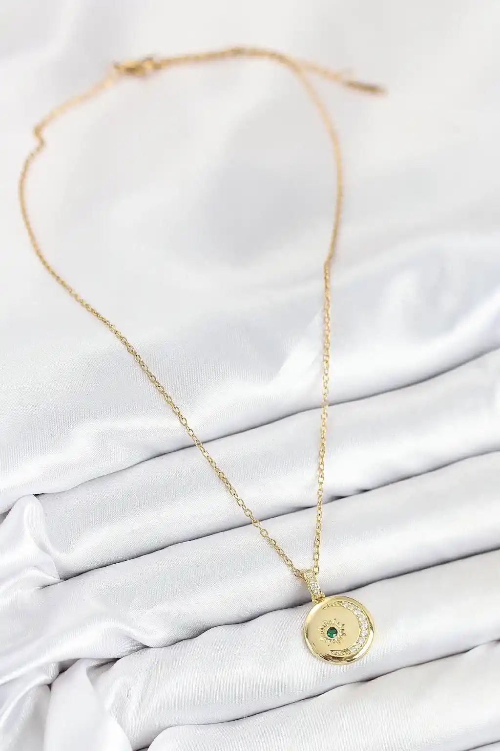 316L Çelik Zirkon Taşlı Ay Ve Güneş Model Gold Renk Kadın Kolye