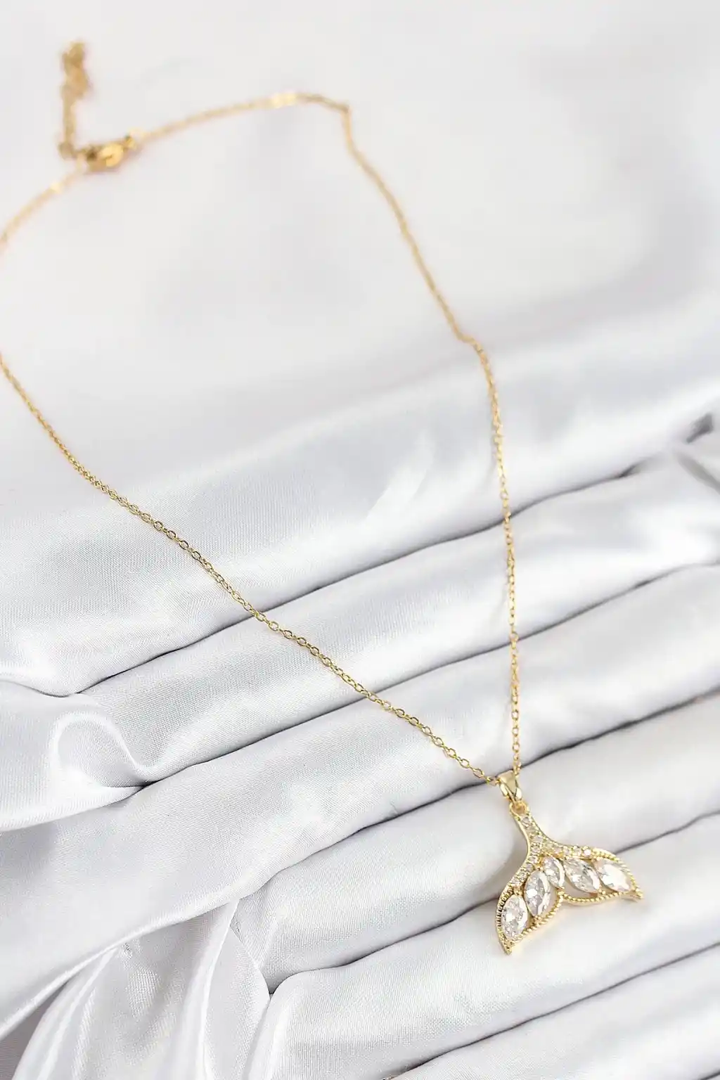 316L Çelik Zirkon Taşlı Balık Kuyruğu Model Gold Renk Kadın Kolye