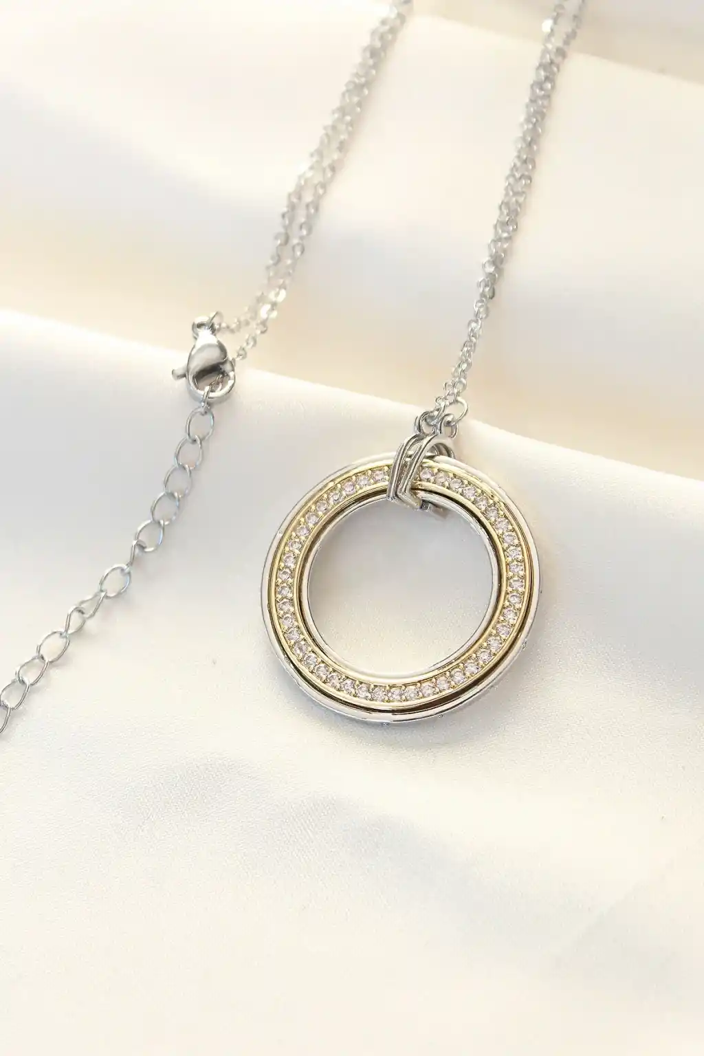316L Çelik Zirkon Taşlı Çift Renkli Tifany Kolye