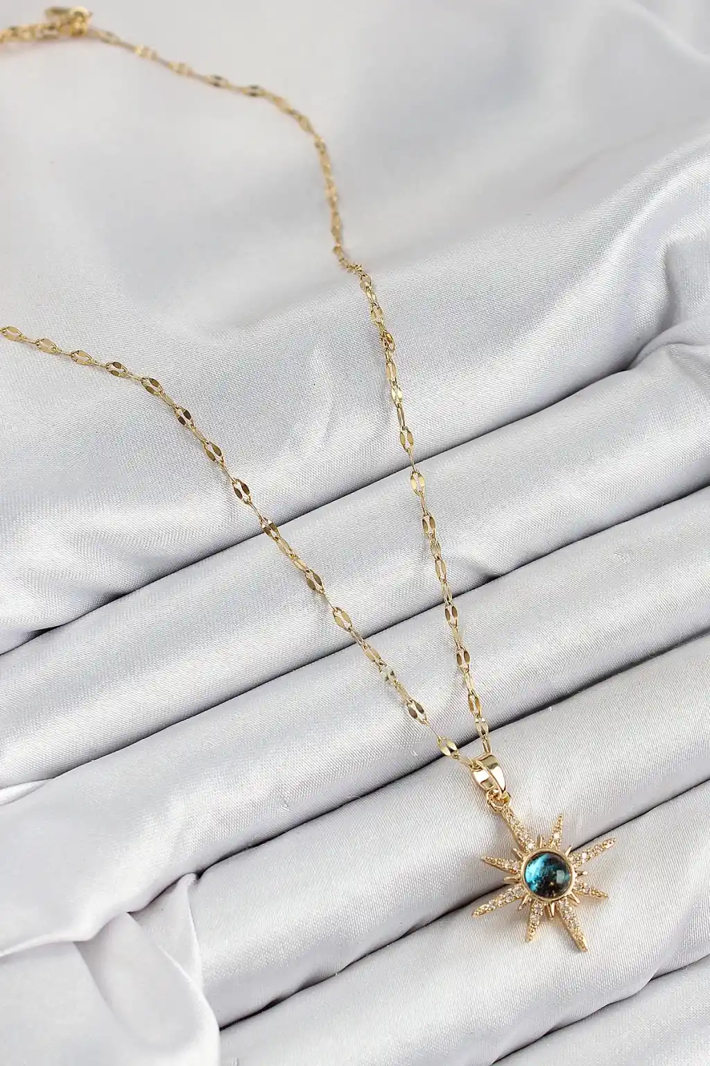 316L Çelik Zirkon Taşlı Kutup Yıldızı Model Gold Renk Kadın Kolye