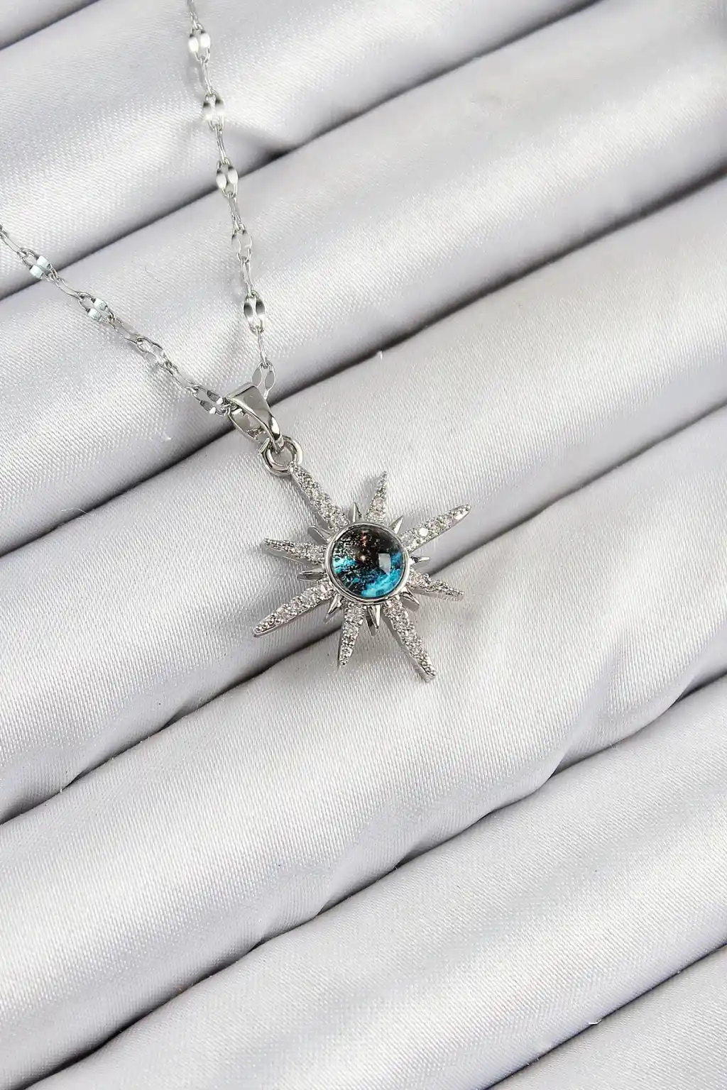 316L Çelik Zirkon Taşlı Kutup Yıldızı Model Gümüş Renk Kadın Kolye