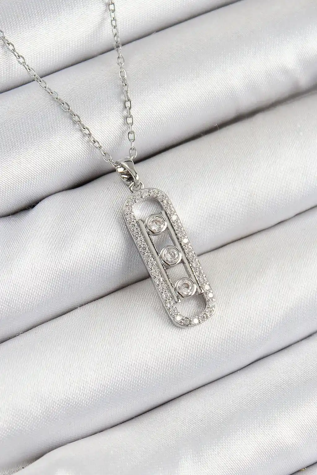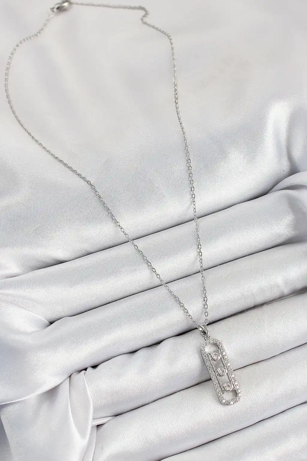 316L Çelik Zirkon Taşlı Messika Model Gümüş Renk Kadın Kolye