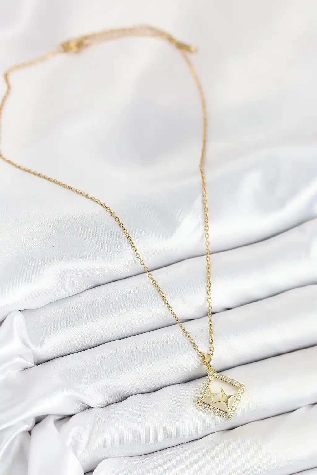 316L Çelik Zirkon Taşlı Yıldız Model Gold Renk Kadın Kolye
