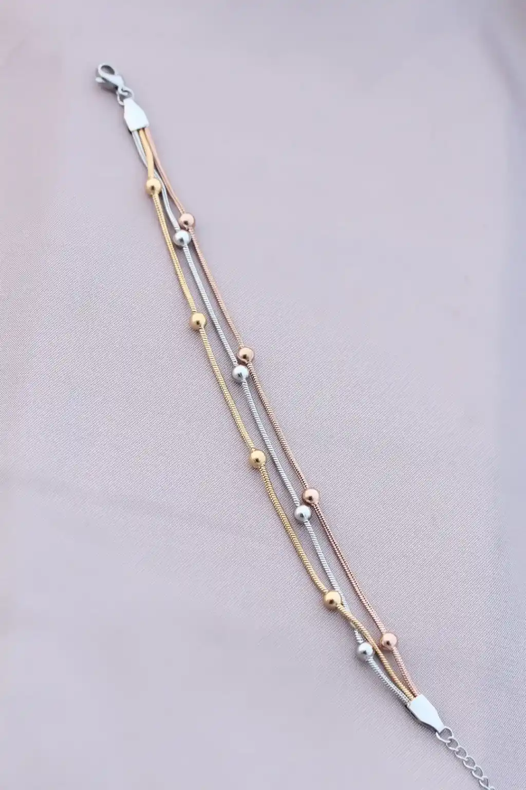 316L Kararmaz Çelik Gümüş Renk Top Zincirli Kadın Bileklik