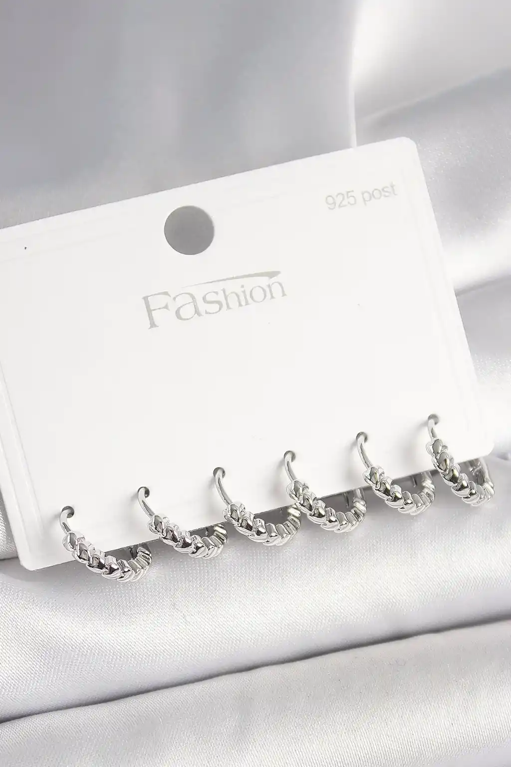 925 Ayar Gümüş Çivi Pirinç Gümüş Renk Kalp İşlemeli Halka Model Kadın Küpe Seti
