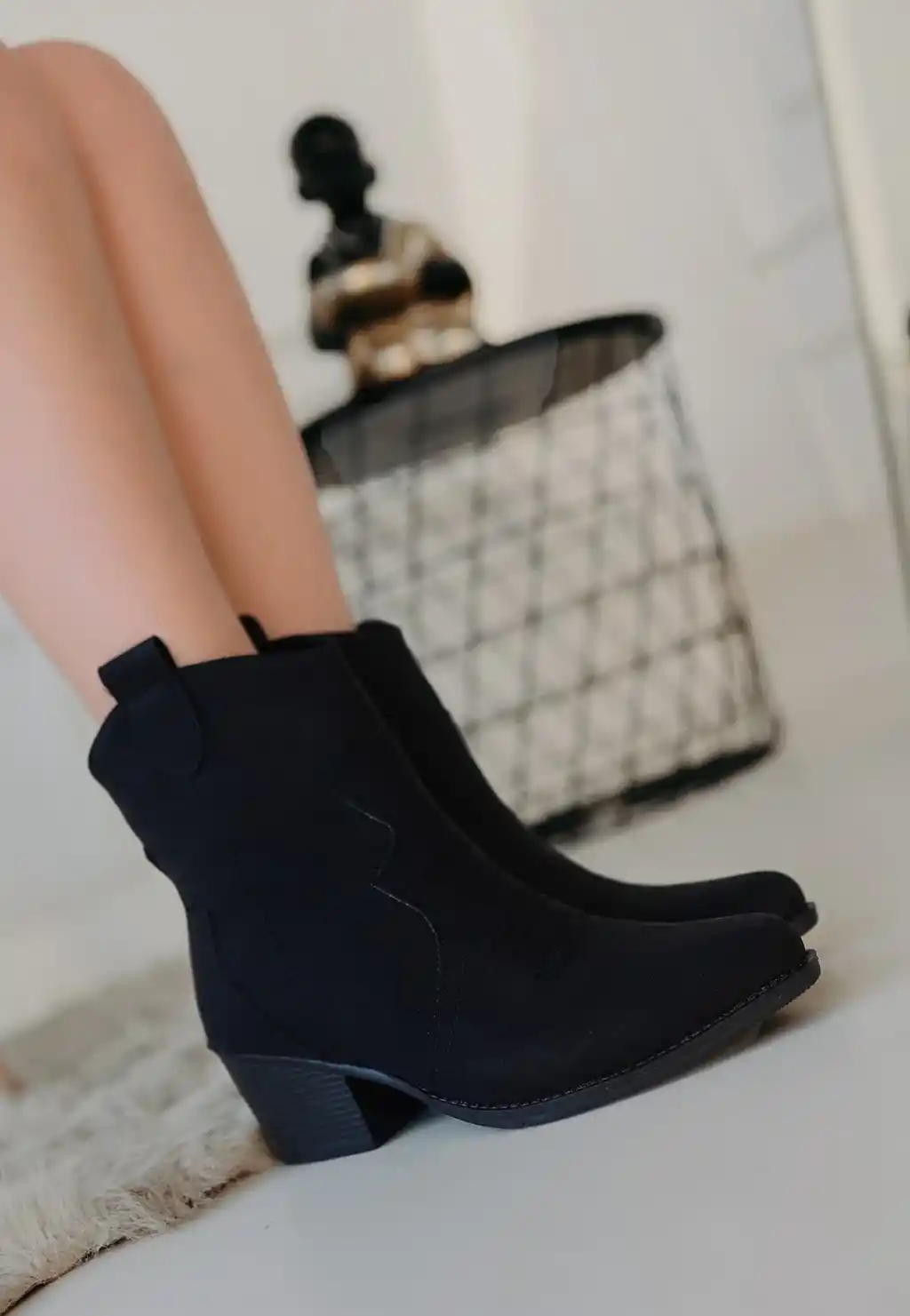 Lukana Siyah Cilt Topuklu Körüklü Bot
