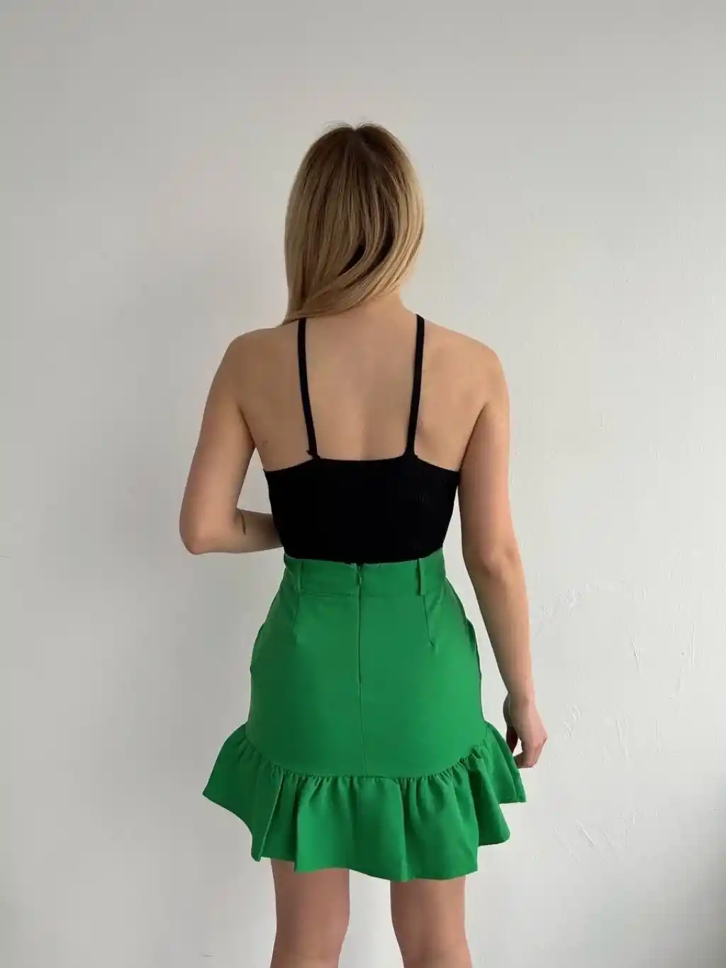 Bu sezonun trend parçalarından biri olan Altı Fırfırlı Etek Yeşil S24817, şıklığı ve zarafeti bir arada sunuyor.