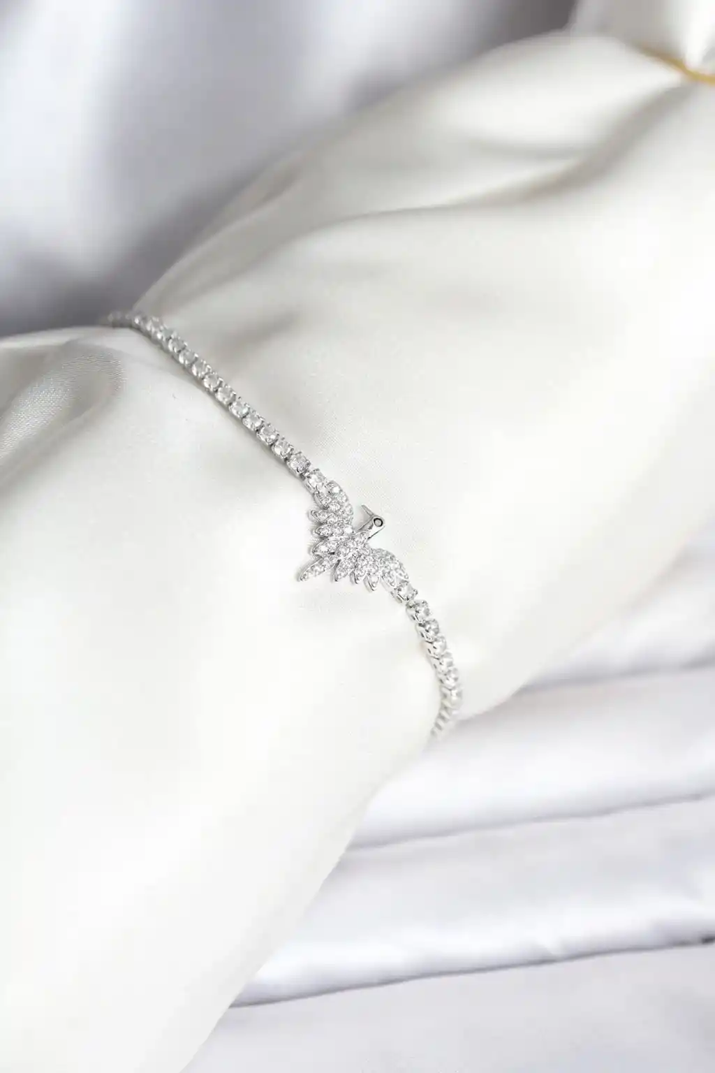 Anka Kuşu Model Zirkon Taşlı Gümüş Renk Pirinç Su Yolu Kadın Bileklik