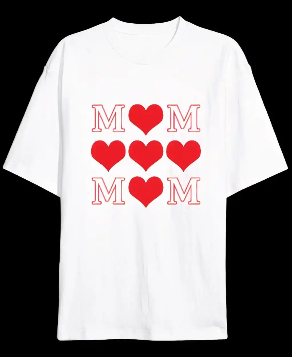 Anneler Gününe Özel Tasarım MOM Kalp Baskılı T-shirt - Beyaz