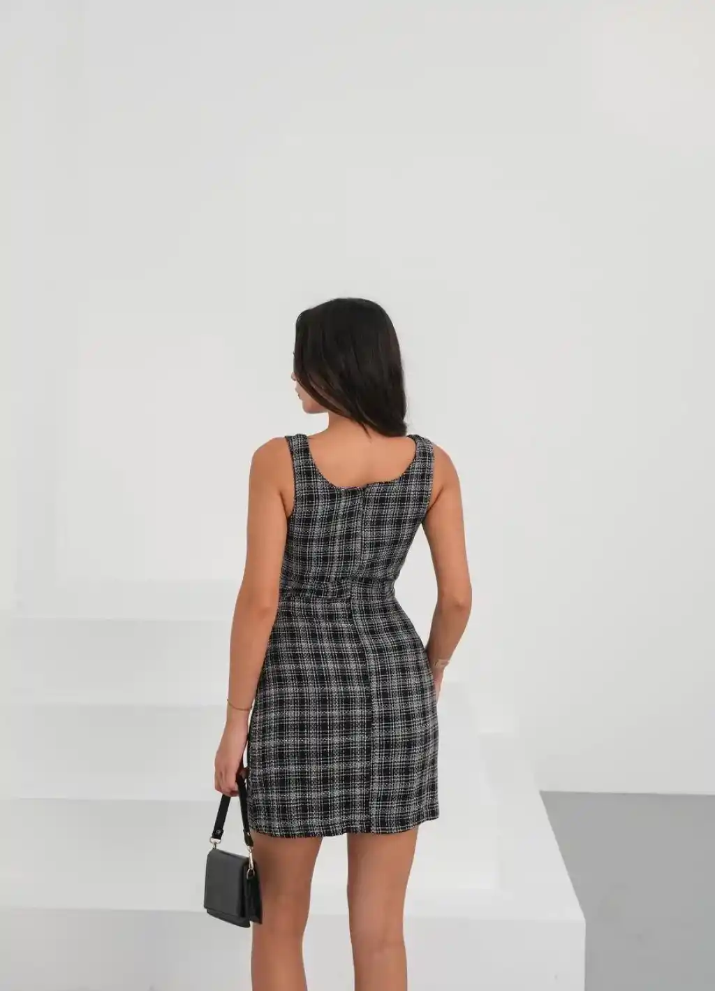 Askılı CH kumaş düğmeli elbise siyahbeyaz h265007, şıklığı ve rahatlığı bir arada sunar.
