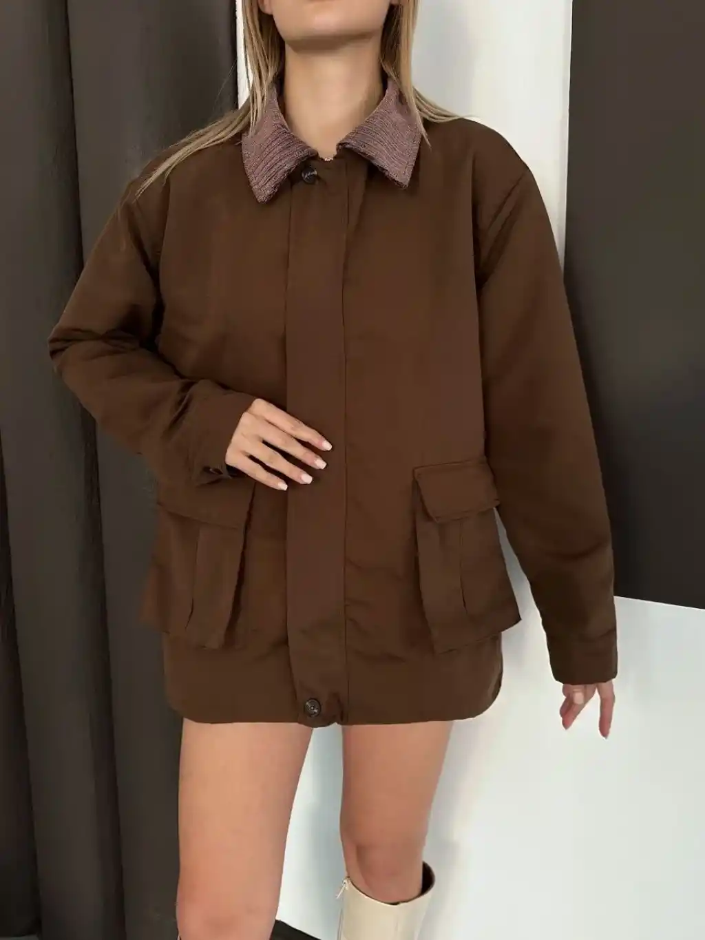 Astarlı yaka detaylı artos ceket kahve st2651019