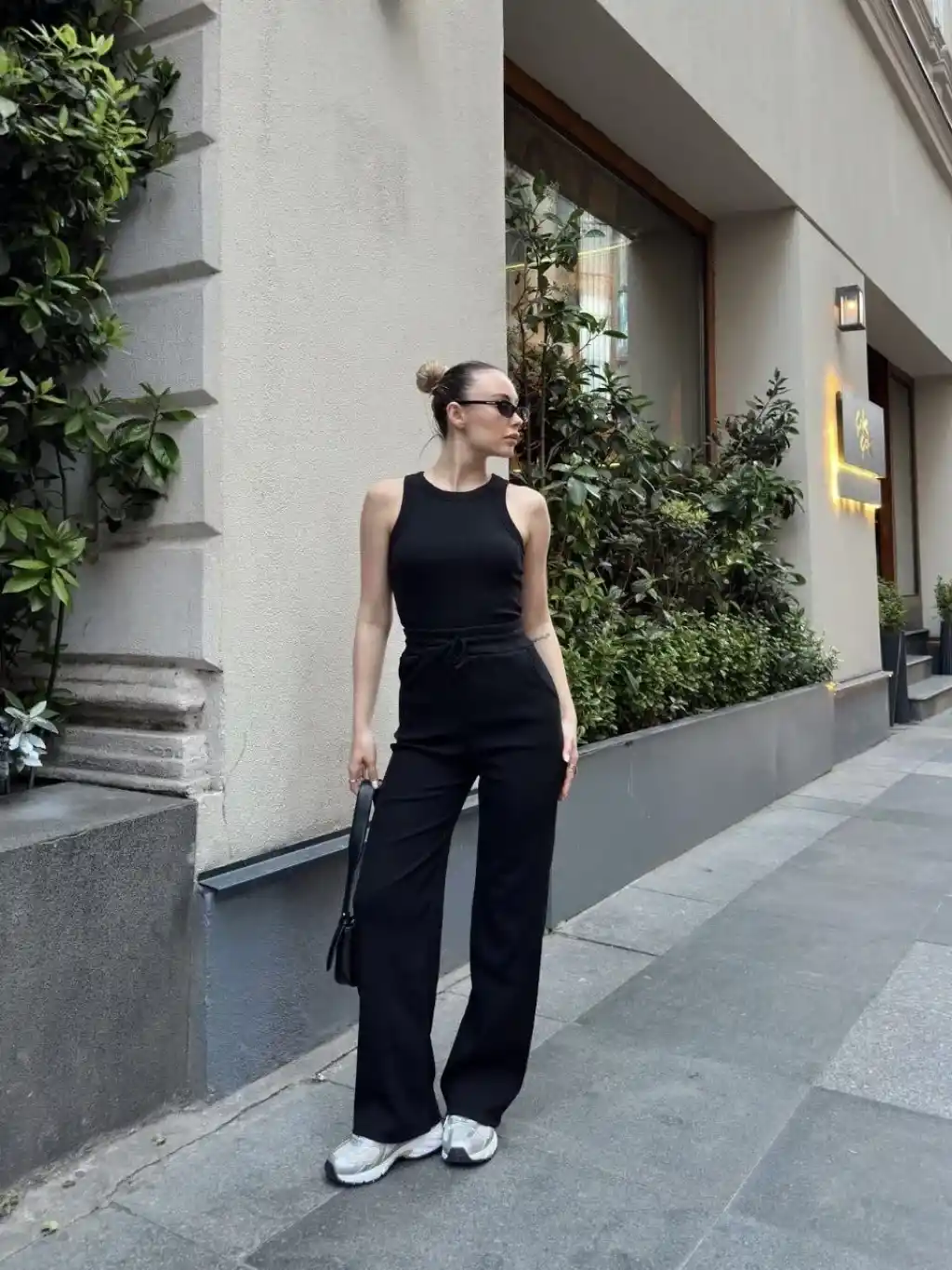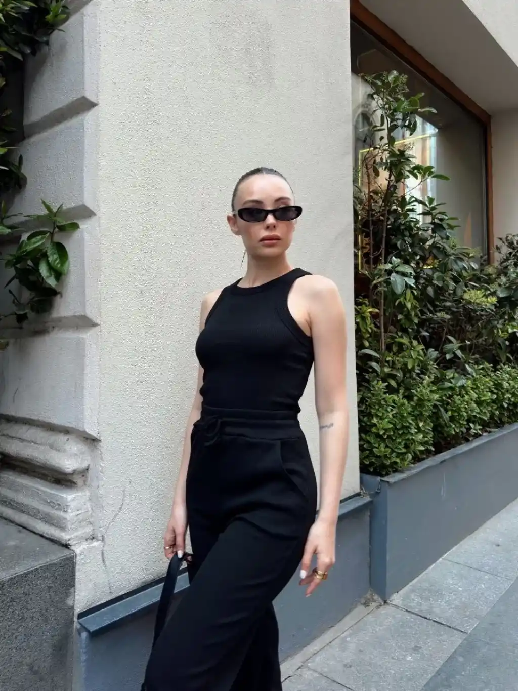 İster günlük kullanımda ister özel davetlerde tercih edebileceğiniz bu takım, şık detayları ve rahat kesimi ile göz kamaştırıyor.
