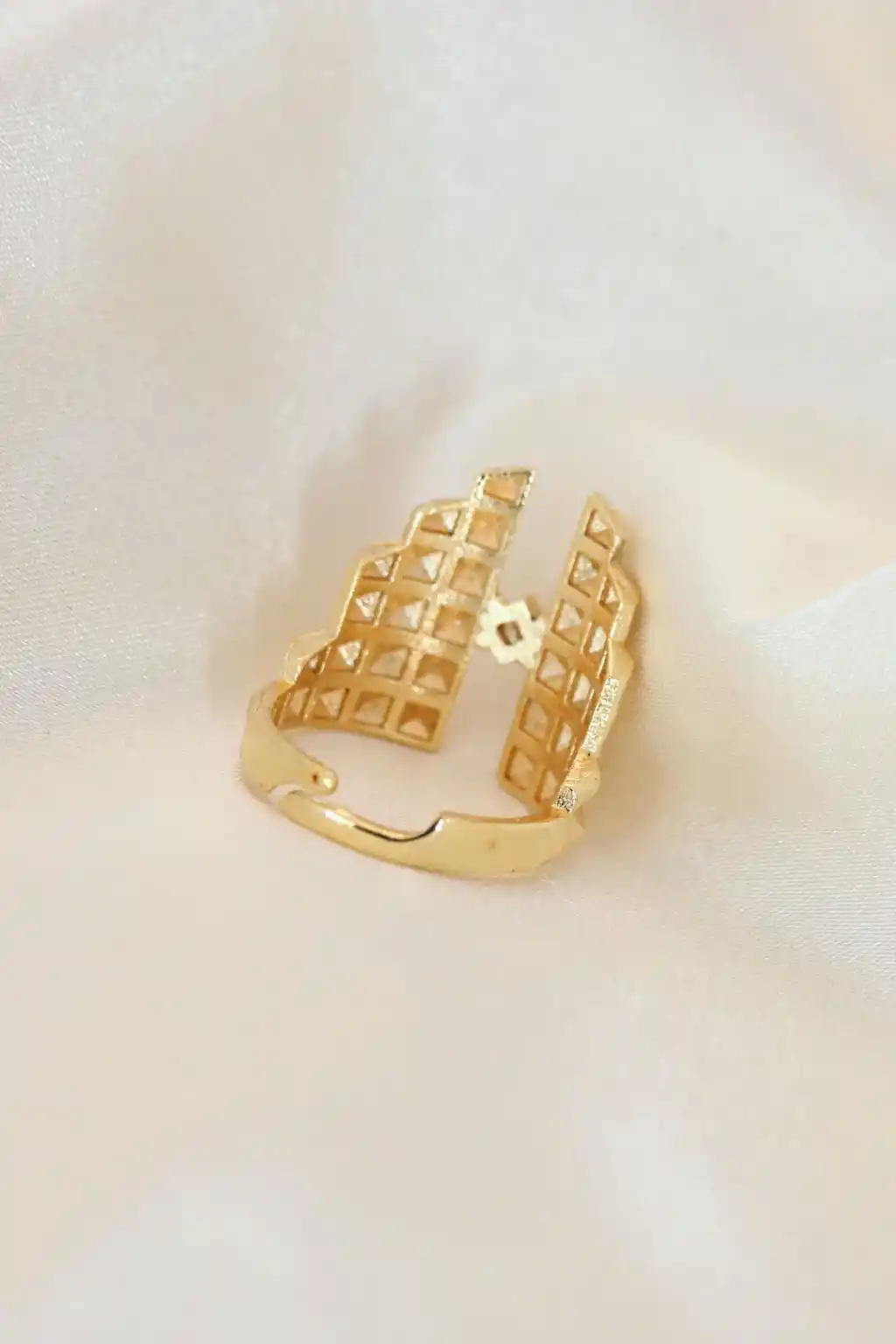 Ayarlamalı Gold Renk Metal Zirkon Taşlı Piramit Yüzük
