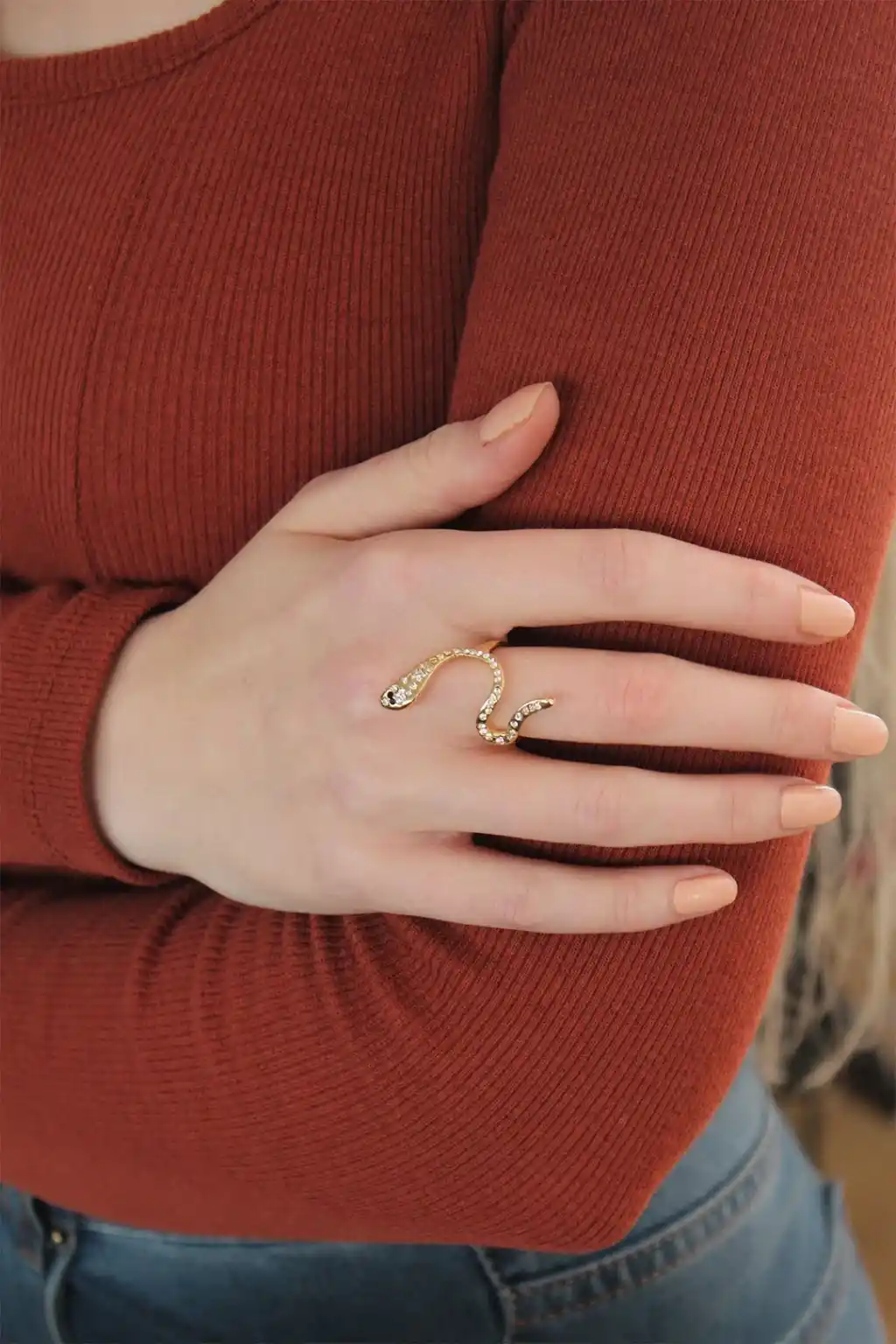 Ayarlanabilir Altın Renk Zirkon Taşlı Yılan Yüzük