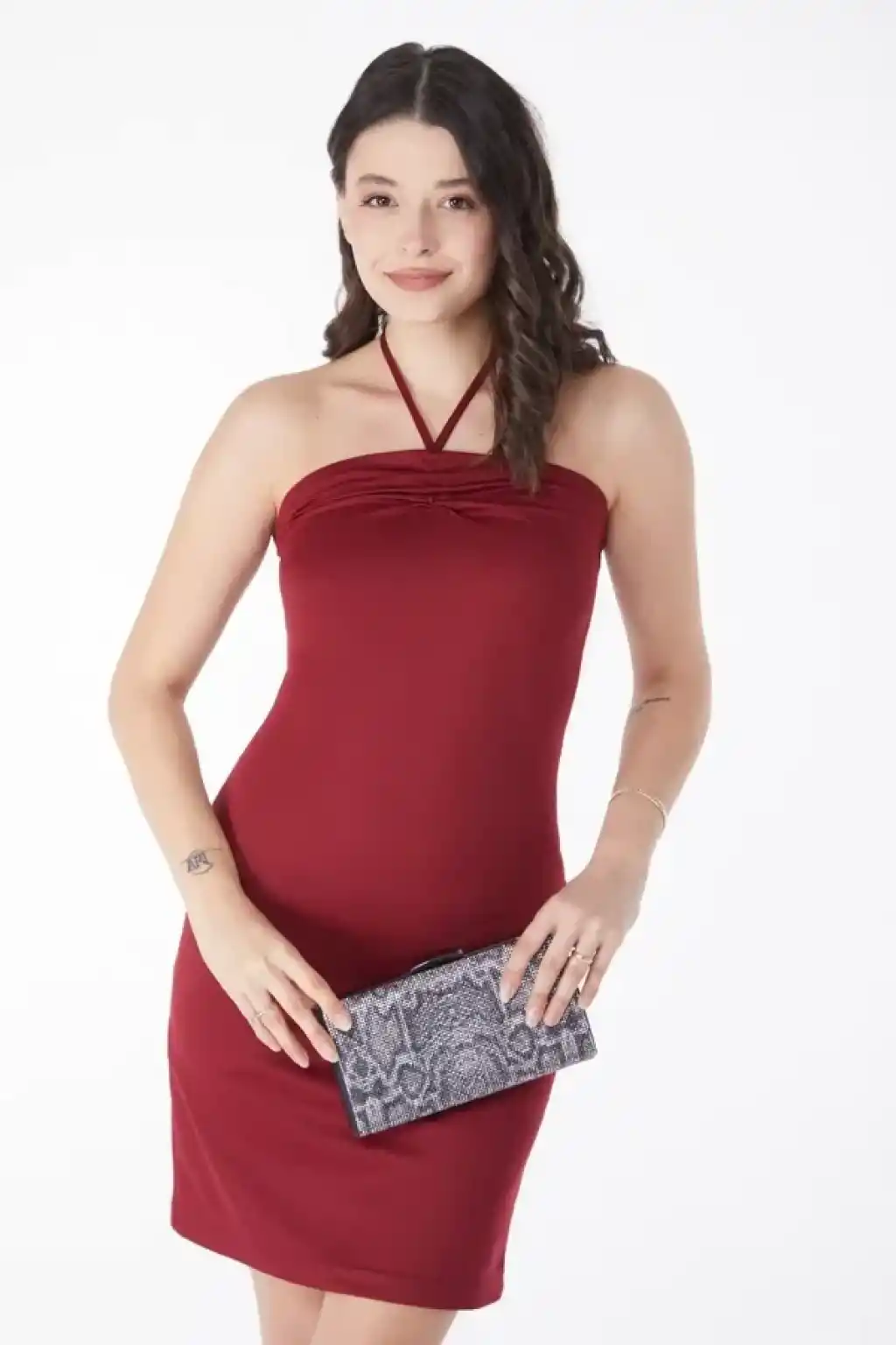 Askılı ch kumaş düğmeli elbise gribeyaz h265007