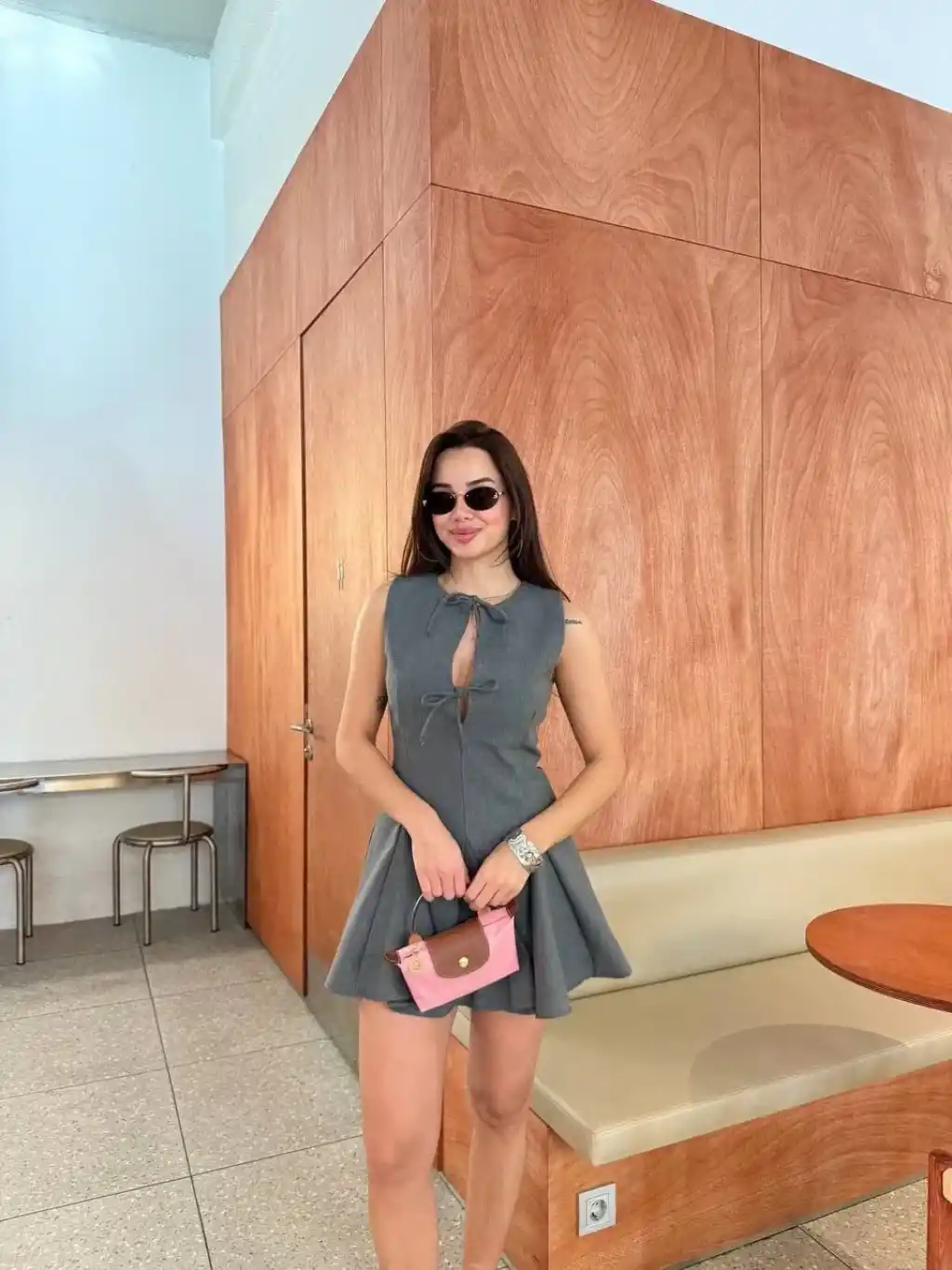 Bağcık detaylı Kolsuz Mini Elbise - Antrasit