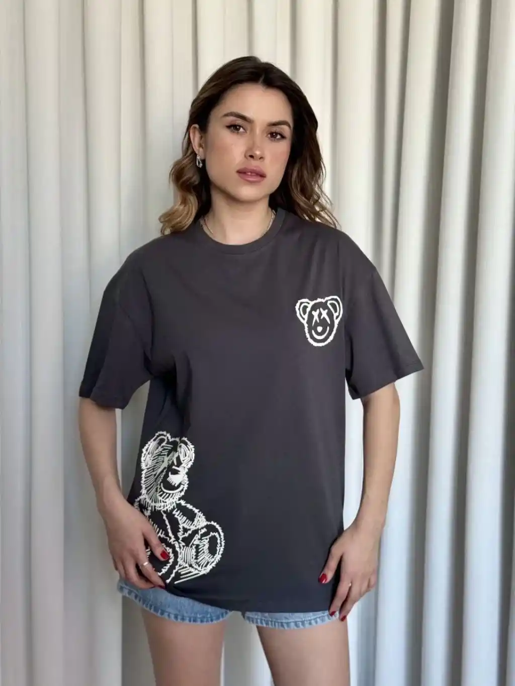 Sevimli baskılı ayıcıklı tişört, şıklık ve rahatlığı bir arada sunuyor.
