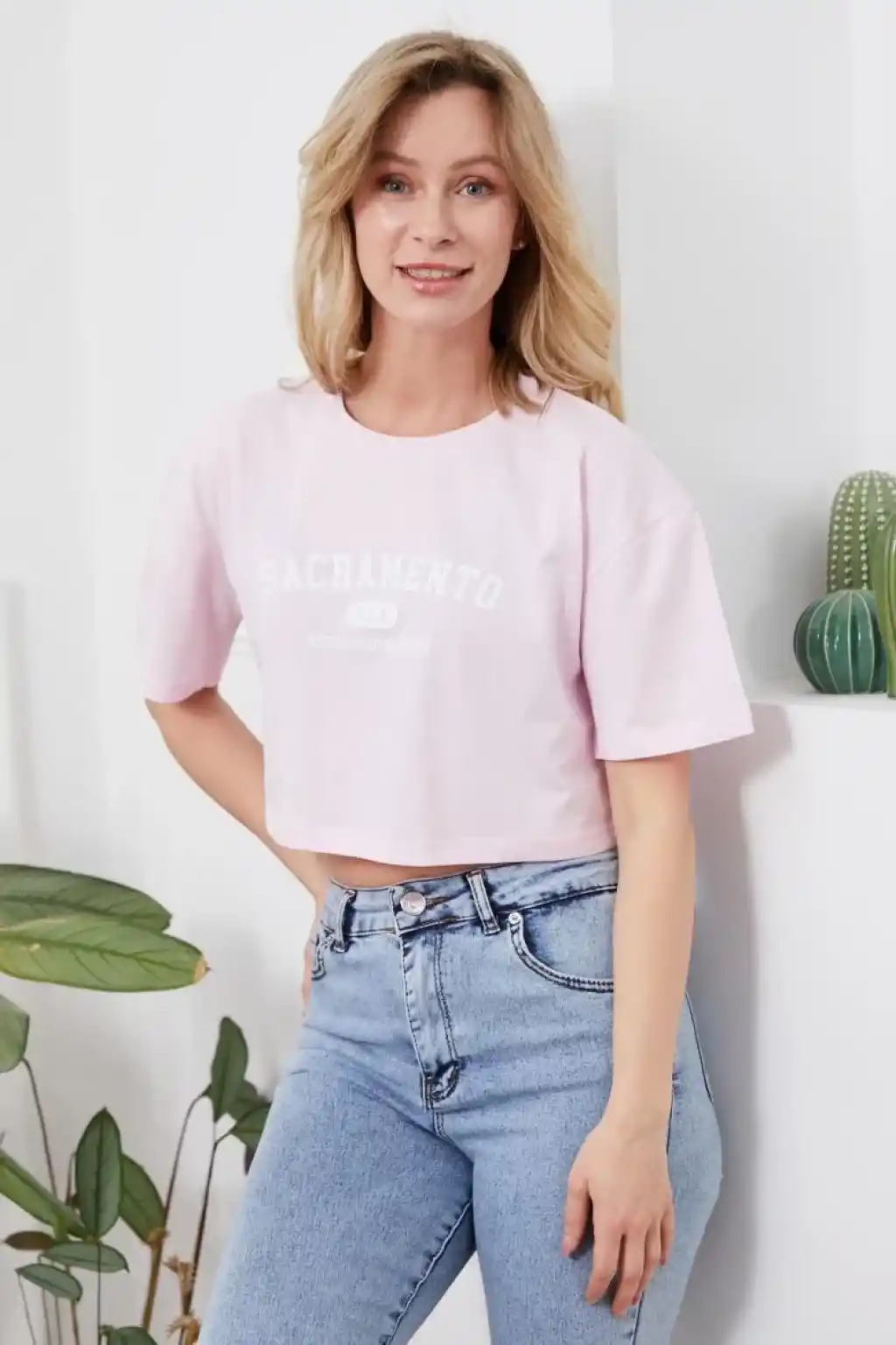 KAZAX marka bu baskılı crop tişört, şıklığı ve rahatlığı bir arada sunar.
