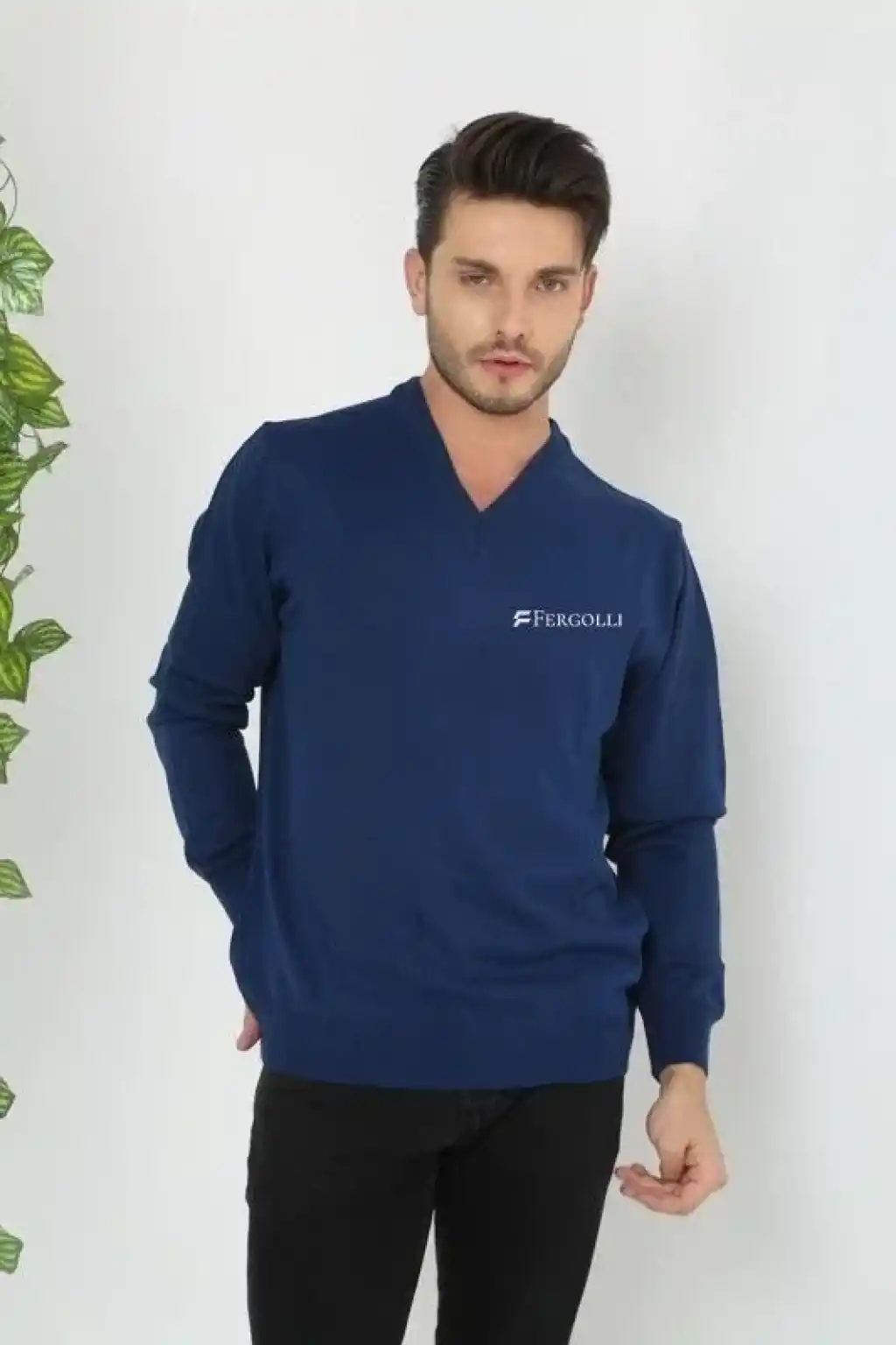 Erkek Yarım Boğaz Triko Kazak yumuşak dokulu Pamuklu ince Dokuma, uzun kollu Rahat Regular kalıp - Lacivert