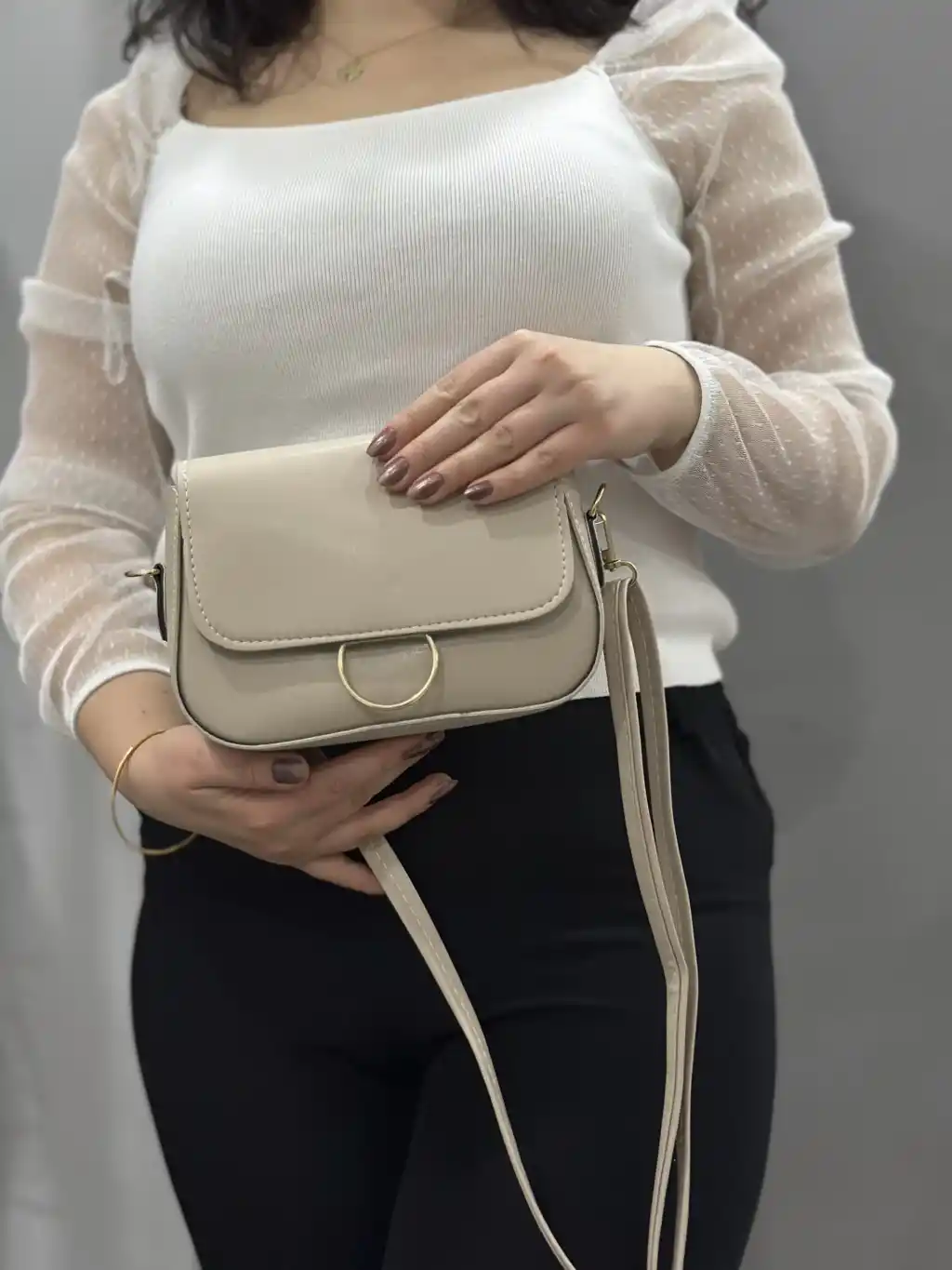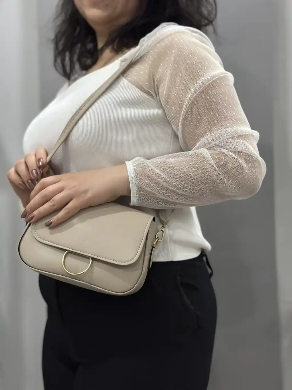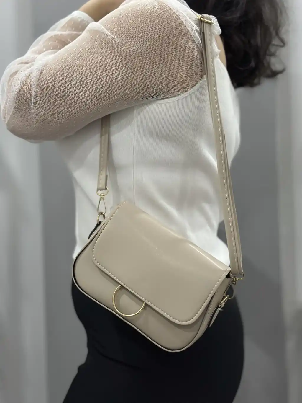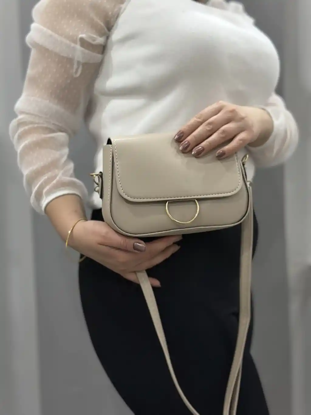Klasik kapaklı bej cilt çanta