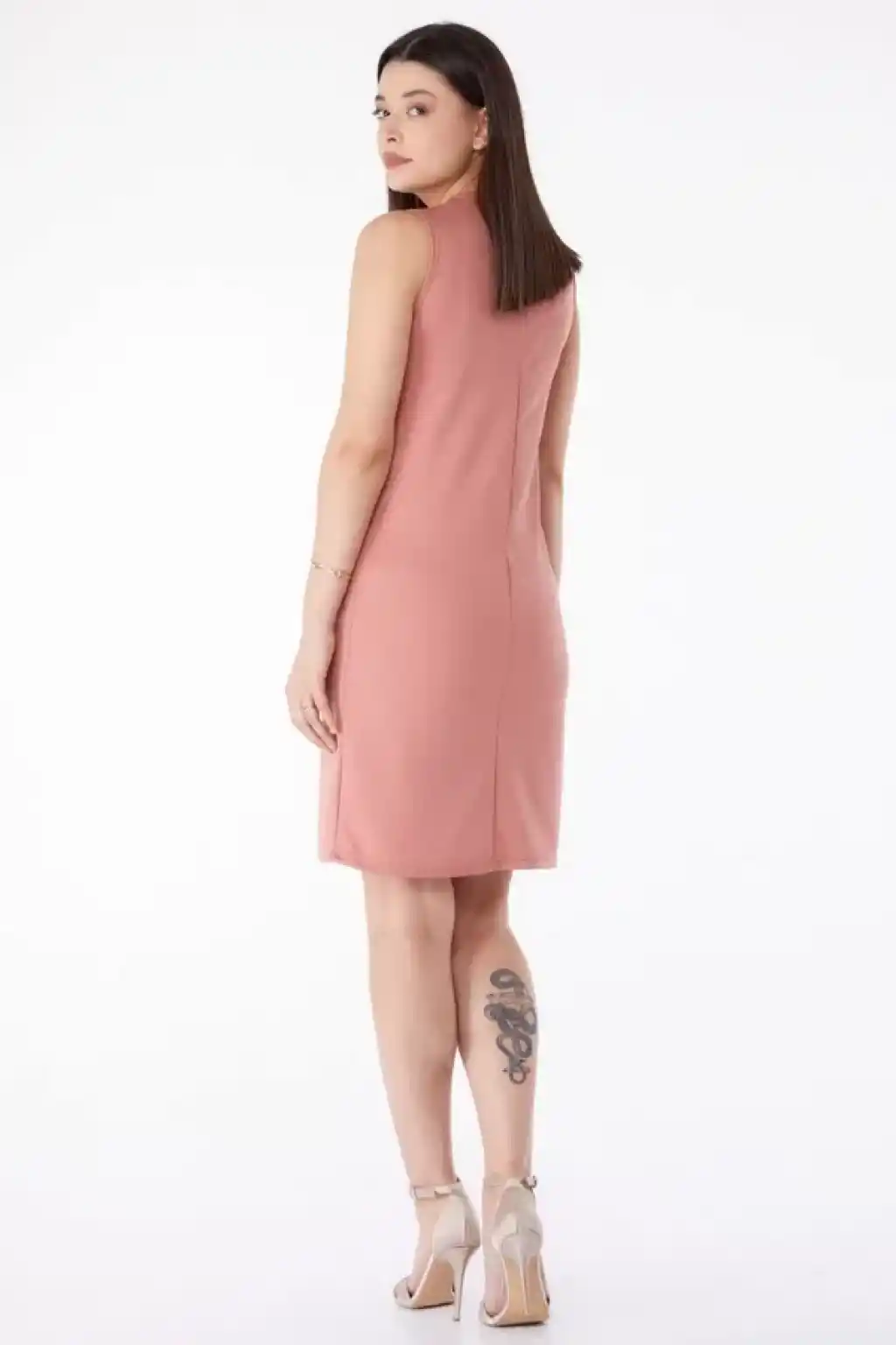 Askılı ch kumaş düğmeli elbise pudrabeyaz h265007