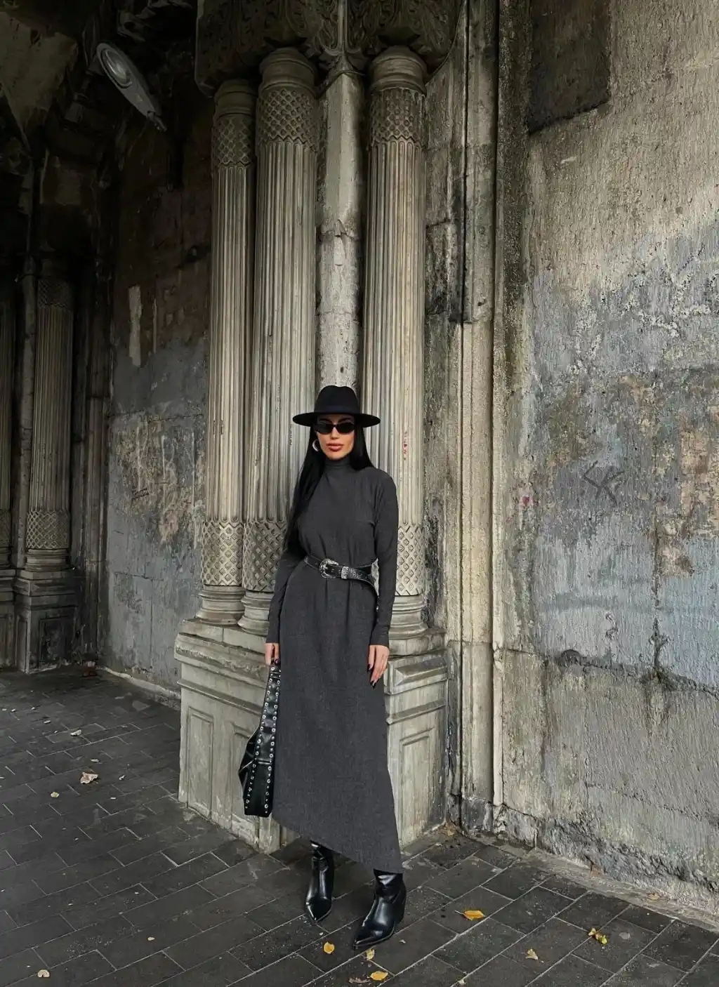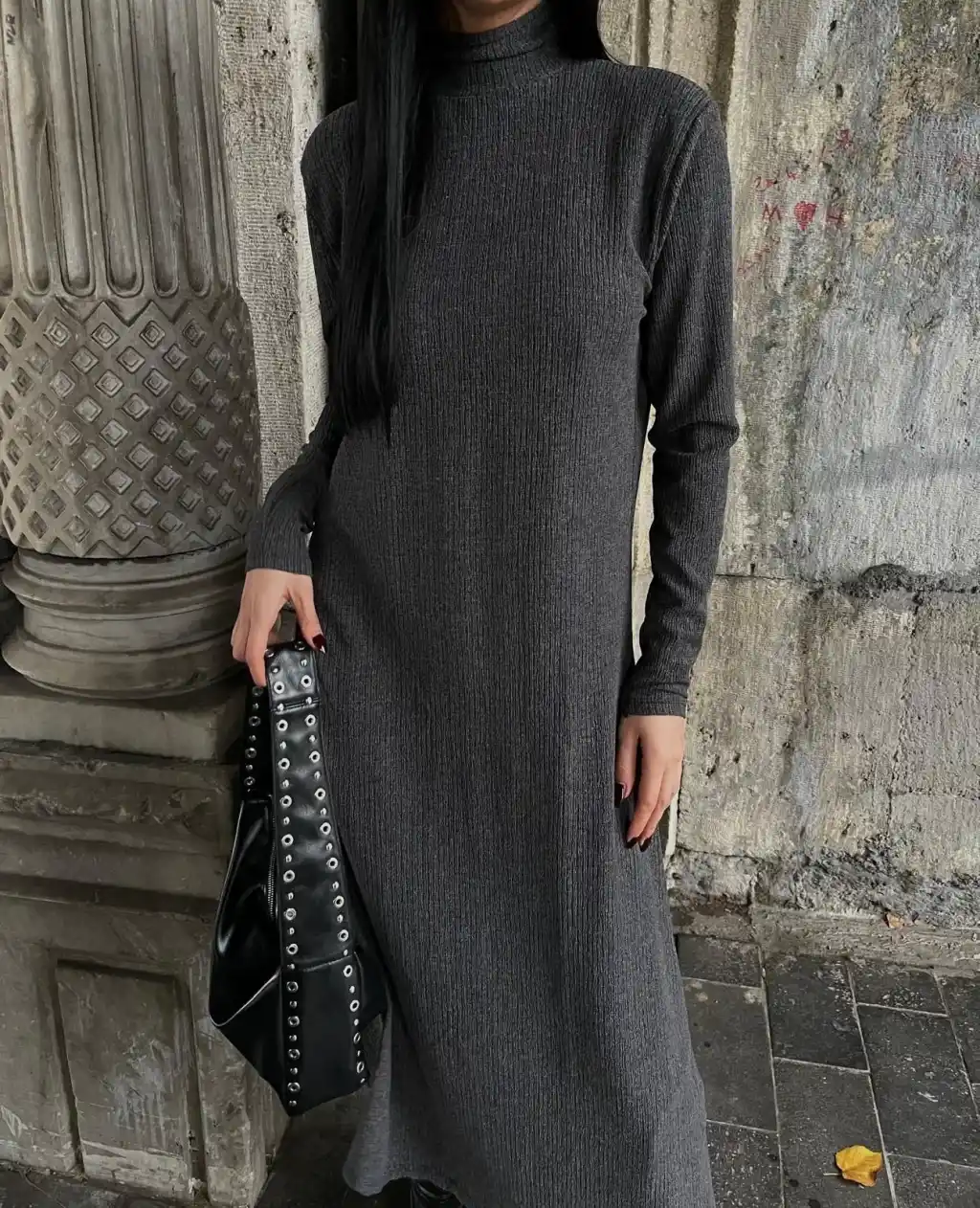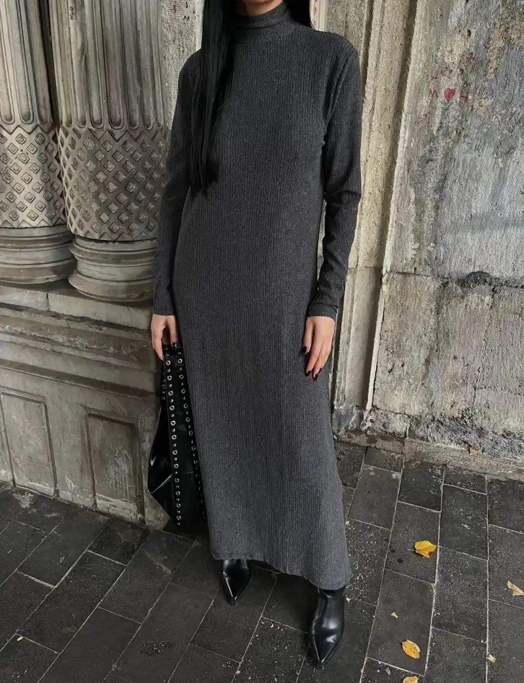 Şıklık ve rahatlığı bir arada sunan Boğazlı Kalın Bürümcük Uzun Elbise Siyah, gardırobunuzun vazgeçilmezi olmaya aday!