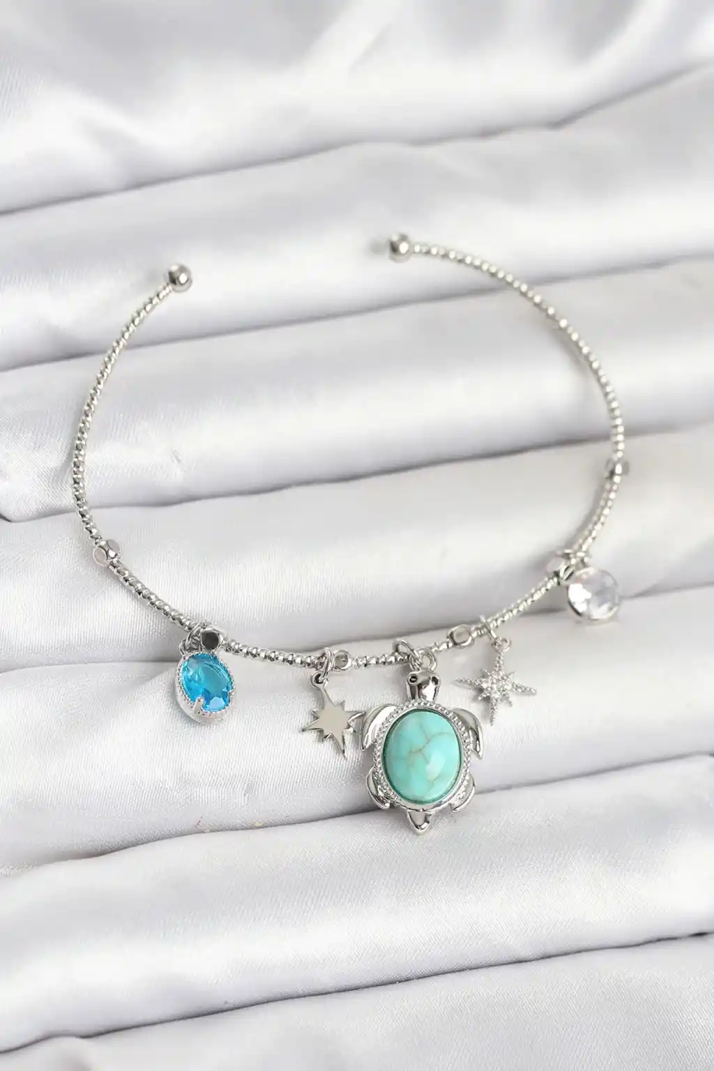 Caretta Caretta Charmlı Gümüş Renk Kadın Bileklik