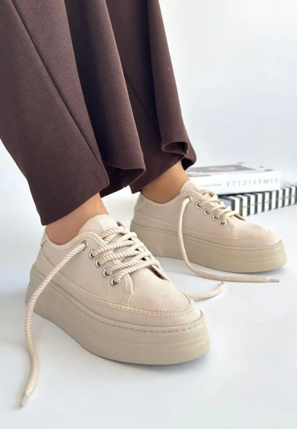 Carin Bej Keten Bağcıklı Spor Ayakkabı
