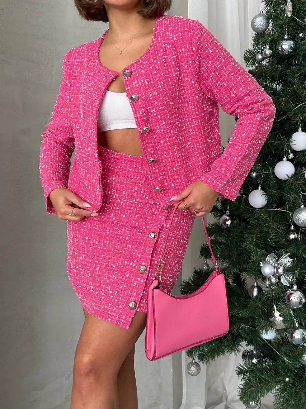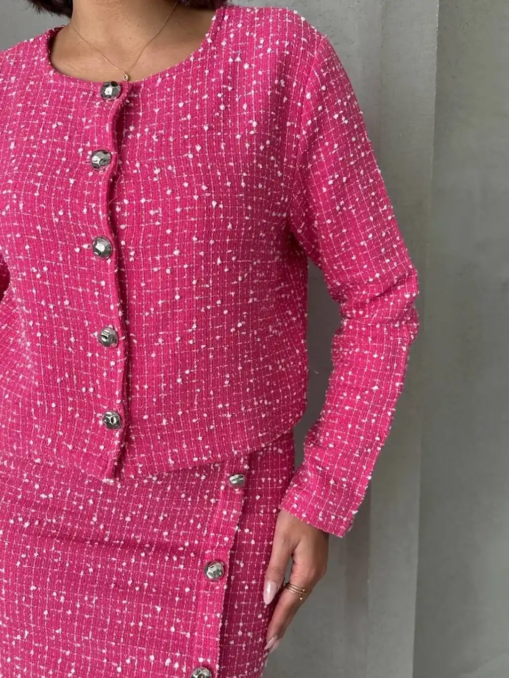 Ceketli etek takım chl kumaş fuşya h24443